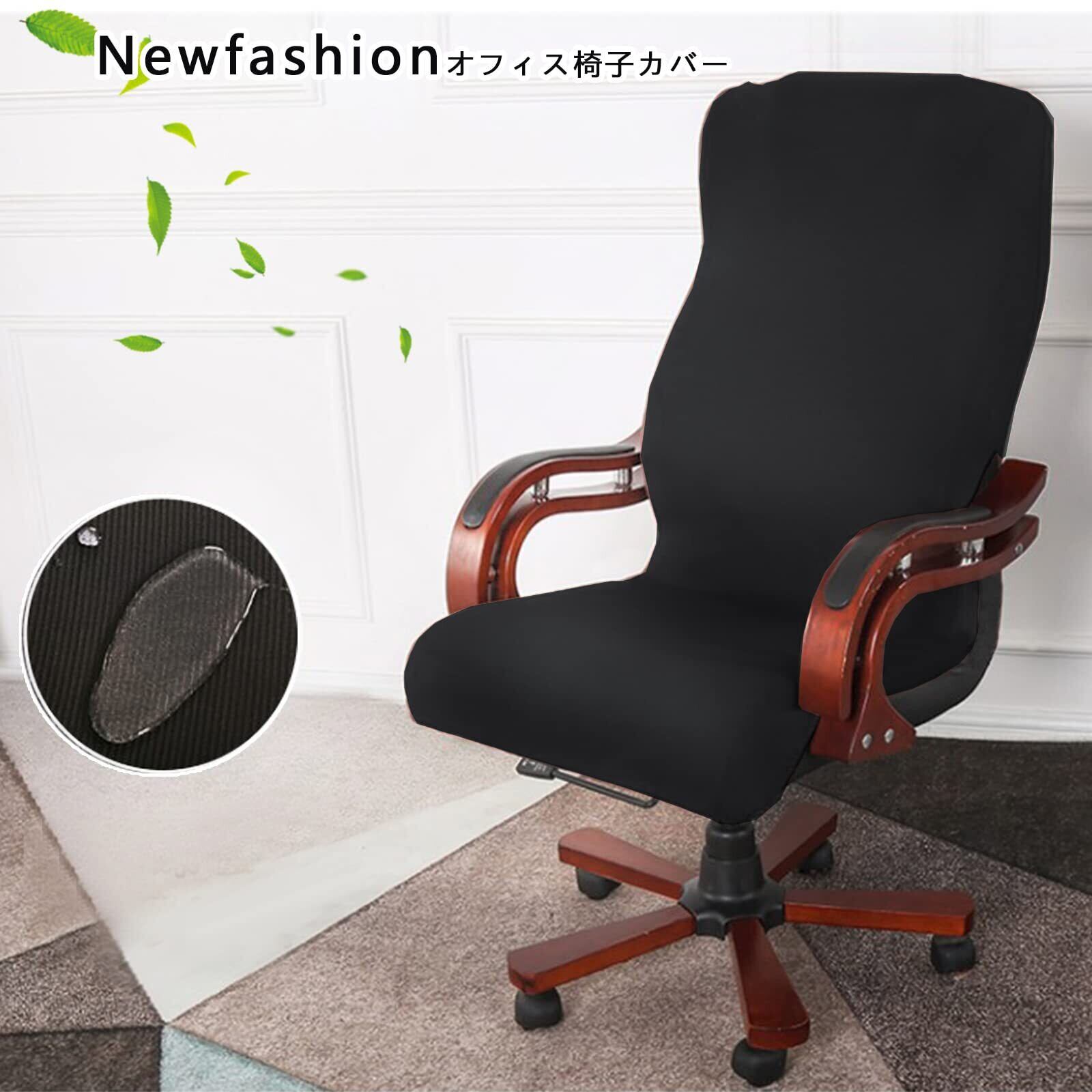 Newfashion チェアカバー オフィス椅子カバー 事務椅子 オフィスチェア カバー 背もたれ 伸縮素材 回転式 一体式 ファスナー付き 洗濯可能 取り外し可能 日本語説明書付き (ブラック, L)