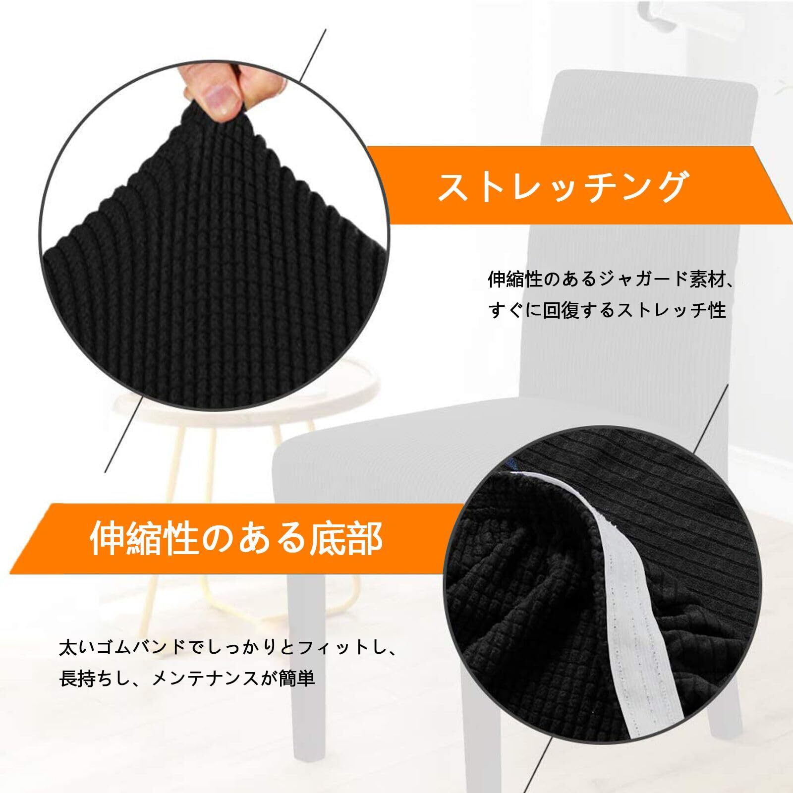 HOMECOVER 椅子カバー 4枚, ストレッチ チェアカバー ジャカード チェアカバー 伸縮素材 ダイニングチェアカバー 取り外して洗える チェアカバー 用ウェディング・結婚式・パーティーなどで-黒-4枚