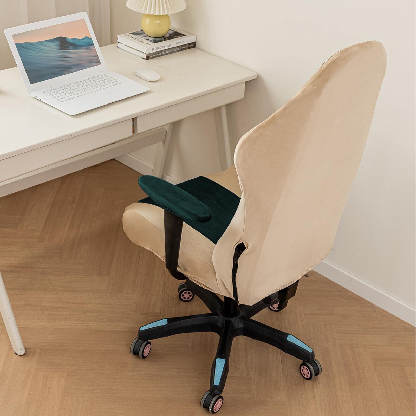 ゲームチェアカバー チェア用事務椅子分体式ファスナー付き伸縮素材 ベルベット生地コンピューターチェアアームレスト回転式椅子スリップカバーオゲーミングチェアカバー ゲーミングチェア 取り外し可能な洗える (ダークグリーン)