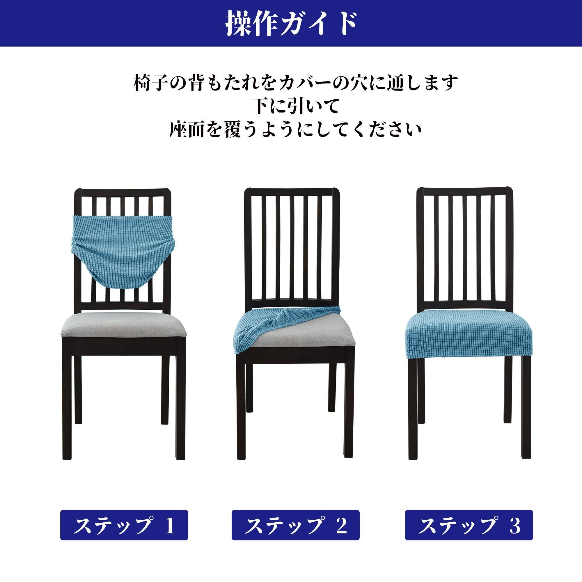 このストレッチチェアカバーは、ポリエステル85%とポリウレタン15%から作られた柔らかく通気性に優れた素材でできています。ストレッチ性能が抜群で、多様な形のチェアにフィットします。座面幅42-53cm、奥行き42-53cm、クッション厚さ4-10cmのサイズに対応しています。日常の汚れやひび割れ、毛玉などを隠すことができ、猫ちゃんやわんちゃんの爪痕も残りにくいので、お子様のいるご家庭やペットのいる方にもオススメです。洗濯機で洗うことができ、簡単にお部屋のイメージチェンジも可能です。