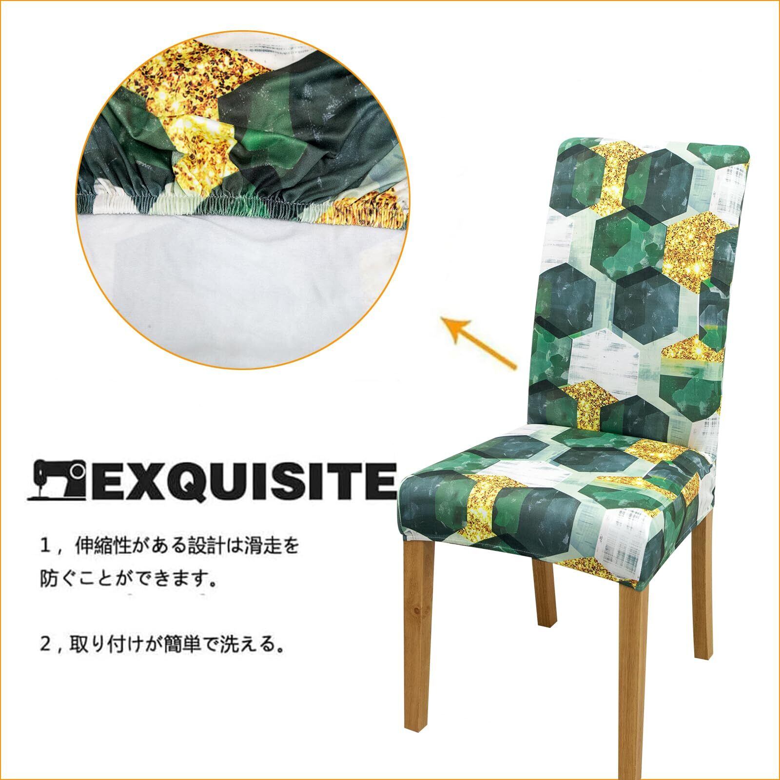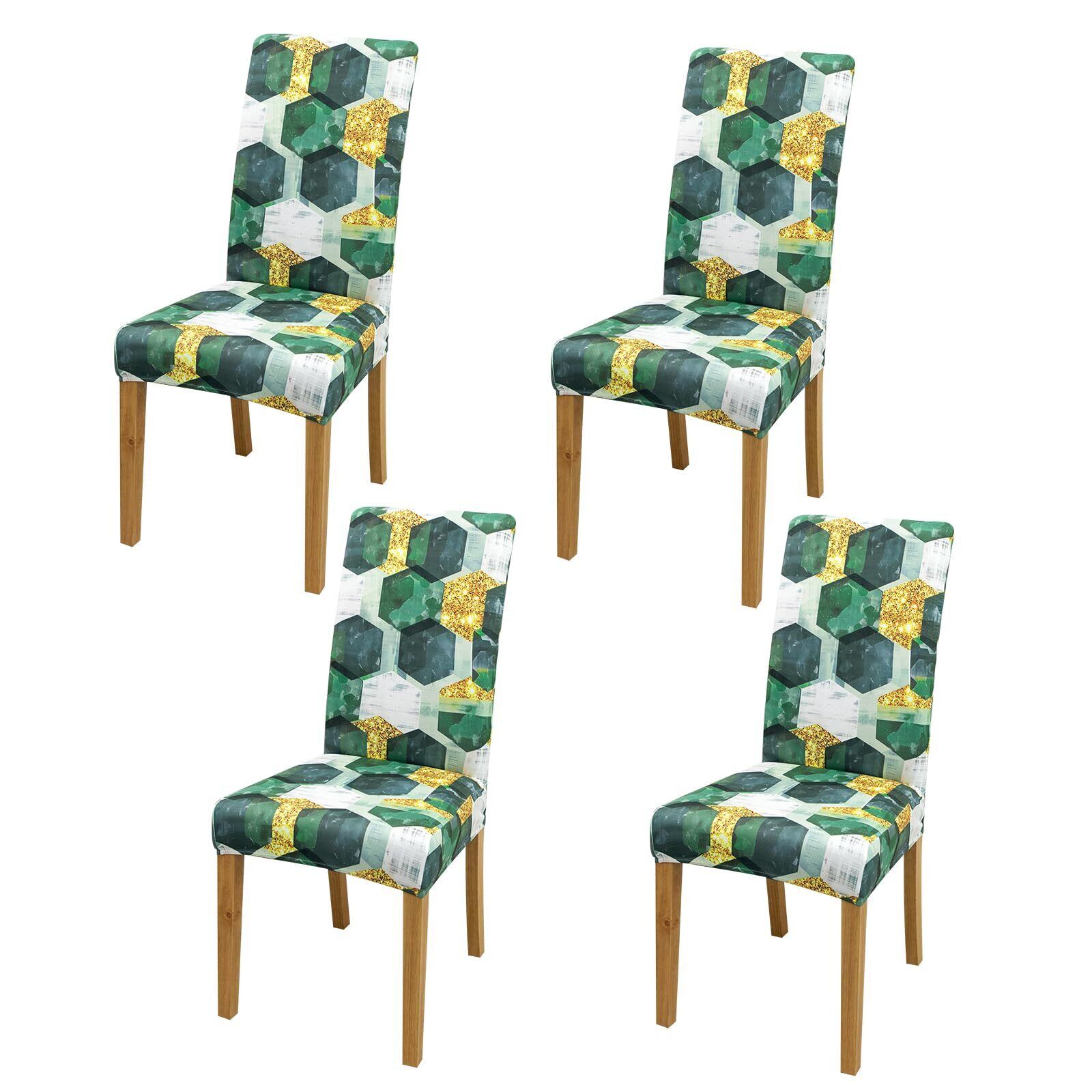 4枚セット椅子カバーダイニングチェアカバーハイバック洗濯可能伸縮性素材耐久性洗えると取り外し(緑の六角形)…