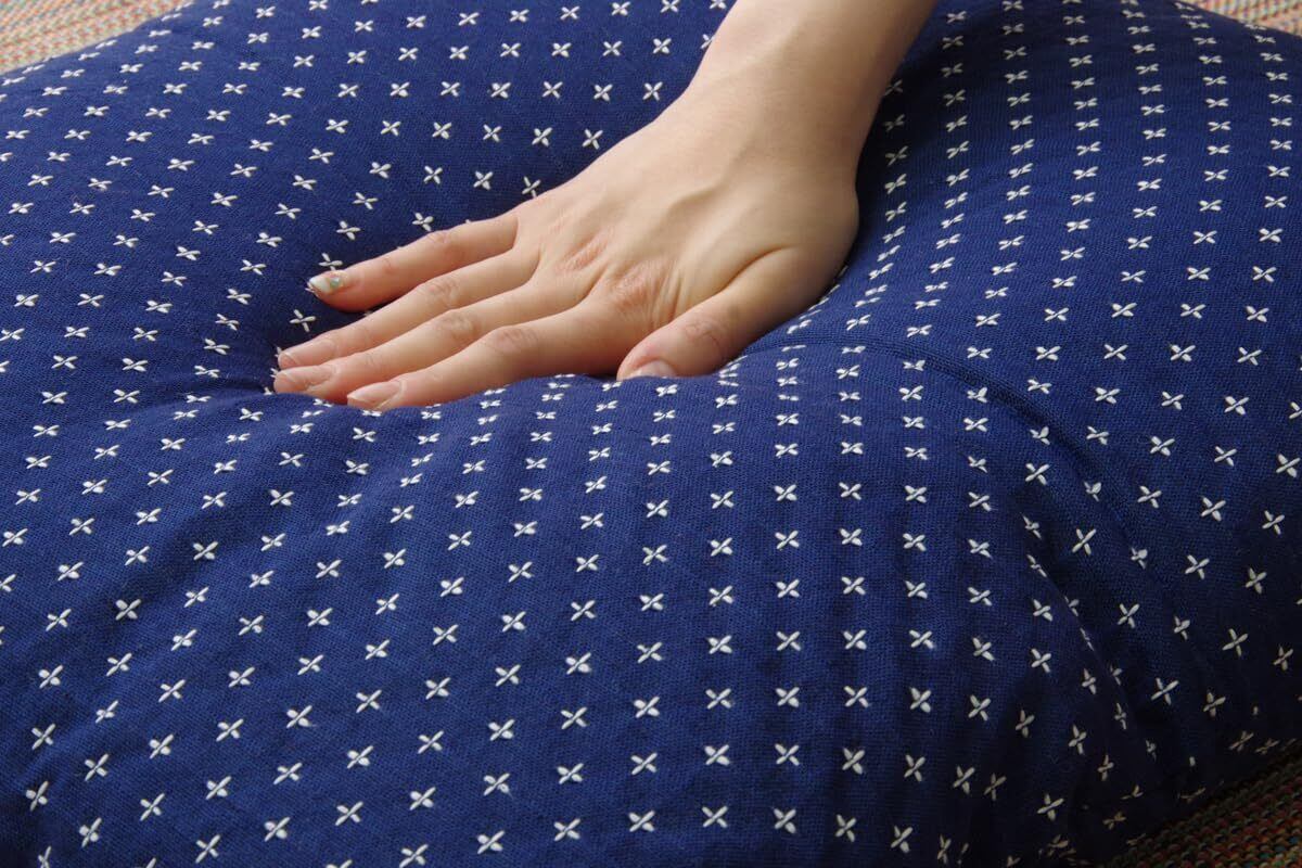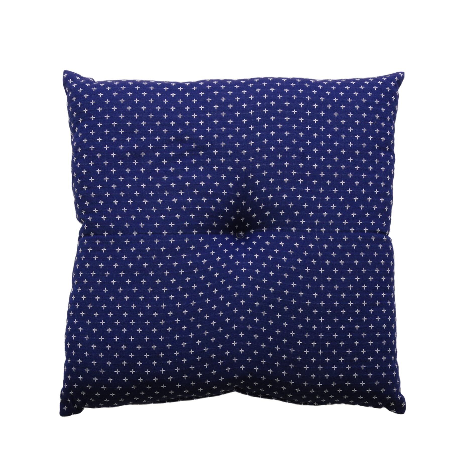 【おしゃれな刺し子】伝統のある刺し子の風合いに仕上げたふっくら座布団。和室だけでなくフローリングにも合う柄なので、場所を選びません。