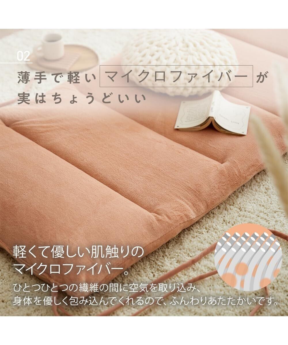リビングでのお寛ぎのお供におススメしたいふわふわマイクロファイバーごろ寝マット!ふかふかなポリエステルわた100%タイプと床付きを感じにくい固わた入りタイプの2種類をご用意しております