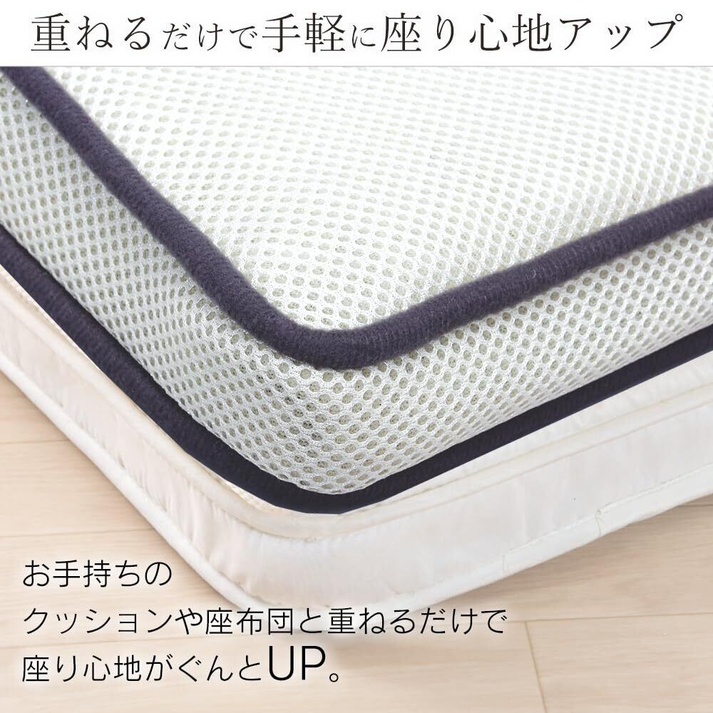 ●オフィスやドライブなど長時間お使いいただく場面に適したクッションです。約5cmのエアロキューブRをメッシュ生地で包み込み、腰などへの負担やムレを軽減します。