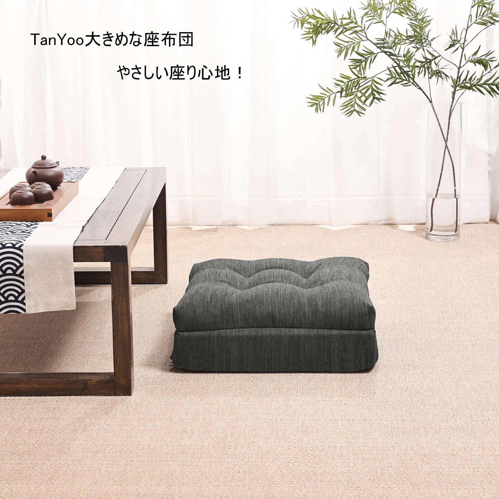 TanYoo 座布団 クッション 低反発+高反発 二層構造 厚め12cmざぶとん フロアクッション 椅子用 床置き 低反発座布団 高反発 40cm角 滑り止め (ブラック, 40×40)