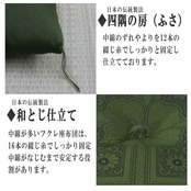 【大き目の八端判(はったんばん)59×63サイズ】しっかりした厚みもあるので、リラックスしてゆったりと座ることができる畳、フローリングやカーペット和洋使えます。