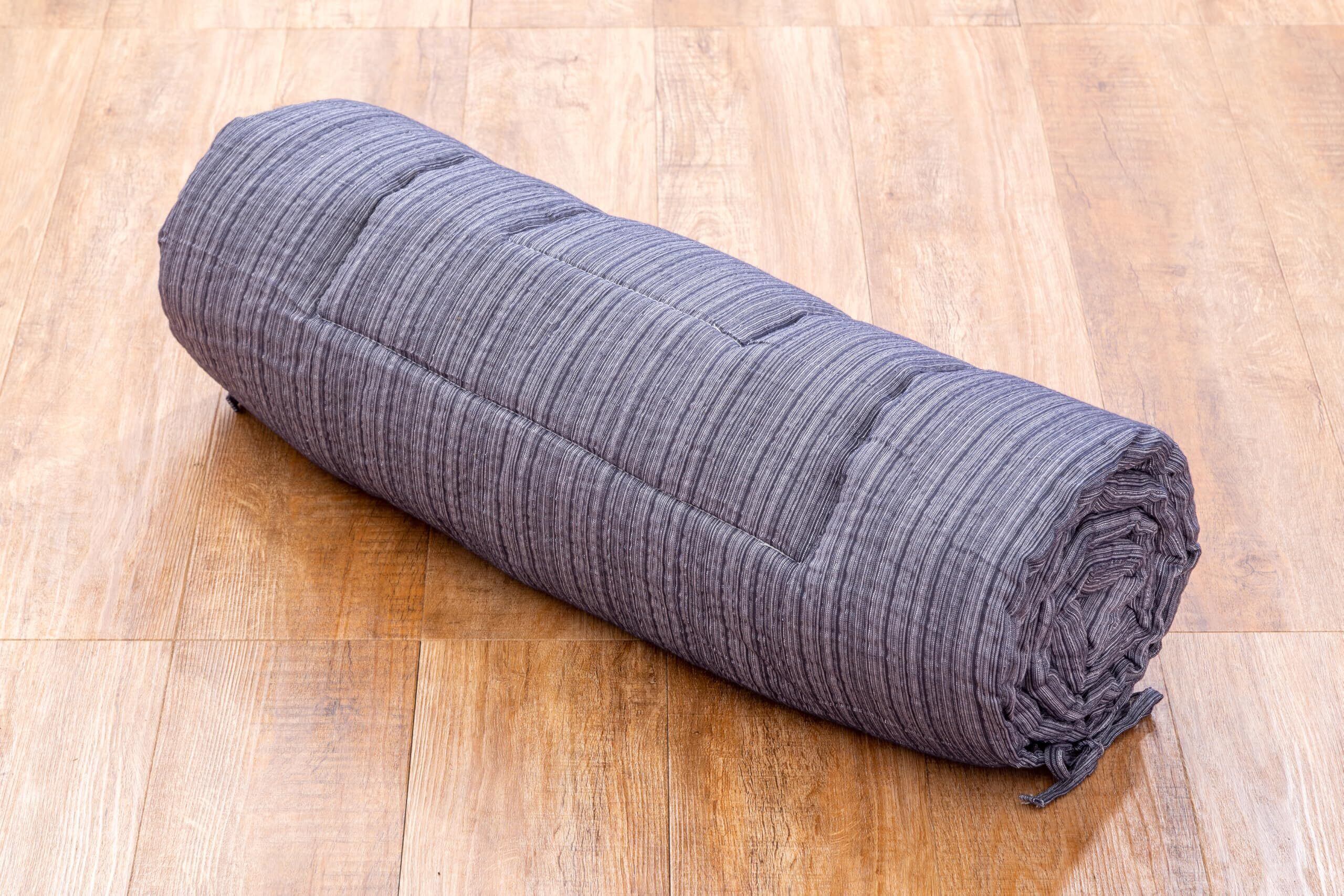 しじら織とは? ・縮(ちぢみ)織の一種。タテ糸の太さの違いを利用して織りあげ布の表面に波状(凹凸感)がある生地。 凹凸感があるので肌に触れる部分が少なくシャリ感のあるさらっとした風合いがあります。 ポイント-1 ●さらっとした肌触り・綿しじら100% ・贅沢な天然綿素材100%っを採用しており、化学繊維と比べるとはるかにやさしい肌触りを持っております。 綿は吸水性にも優れ、吸収した水分は外に発散されるので、通気性が良く、シーズンを通して快適に使うことができます。 ・綿糸を独特なしじら織に織り上げ、表面が波状になっており、汗をかいた肌で触れてもべたつかず、肌離れが良いのが特長。 ・こうした綿しじらは紺色の無地と取り合わせらせ、見た目に落ち着いた高級感が出されます。 ●超軽量 ・製品重量はわずか1.2㎏です。女性一人でも片付けが簡単にできます。 ・毎日出し入れしてもラクラク。さらに軽量タイプなのに厚みが約4㎝ありますので、床つき感軽減でボリューム感たっぷりです。 ●限られた空間を快適に ・わざわざ夜の重たい布団をださなくでも、気軽に昼寝やうたた寝ができます。側地サイズ70x180㎝の大きさで、寝転がるのに充分です。 ・自分用だけでなく、来客用の敷布団にも使えます。 ・また、3分の1のところで折りたたんで、壁などに寄せて即席のソファができます。 ・テレビ、スマホを見る時間や、読書、ゲームの時間をより快適にできます。半分に折りたたむと大きめサイズの座布団の形になります。 ●側地サイズ ・側地(わたを入れる前の生地)サイズです。出来上がりサイズは少し小さくなります。