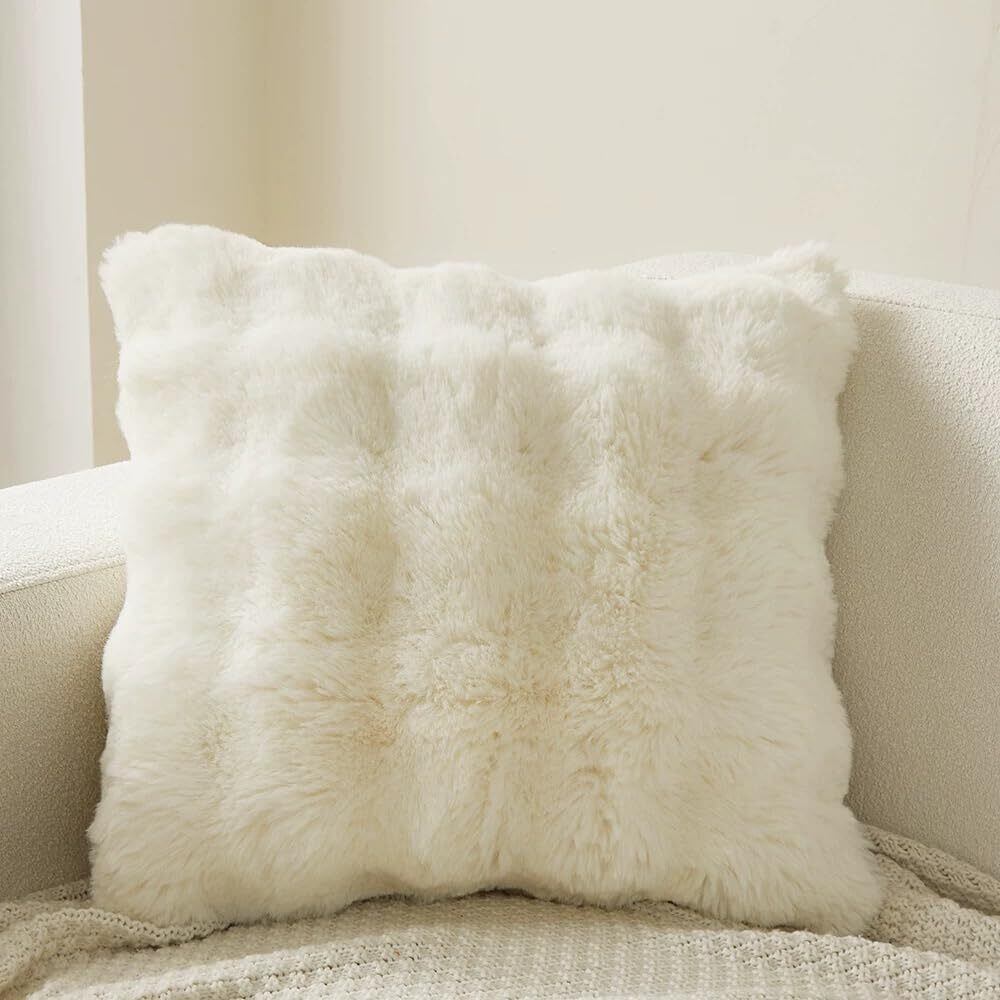 クッションカバー ラビットファー調 座布団カバー マイクロファイバー 45×45cm ファスナー式枕カバー おしゃれ 可愛い 秋冬 枕 厚手 もこもこ 暖かい 着脱簡単 肌に優しい 静電気防止 柔らかく ふわふわ 冷え対策 洗える 吸湿発熱 昼寝(ホワイト)