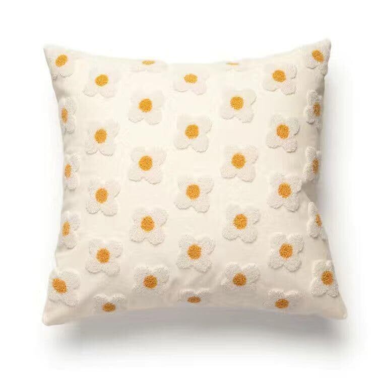 miagolale パイルフラワー クッションカバー 45×45cm 花柄 白い花 (ホワイト)