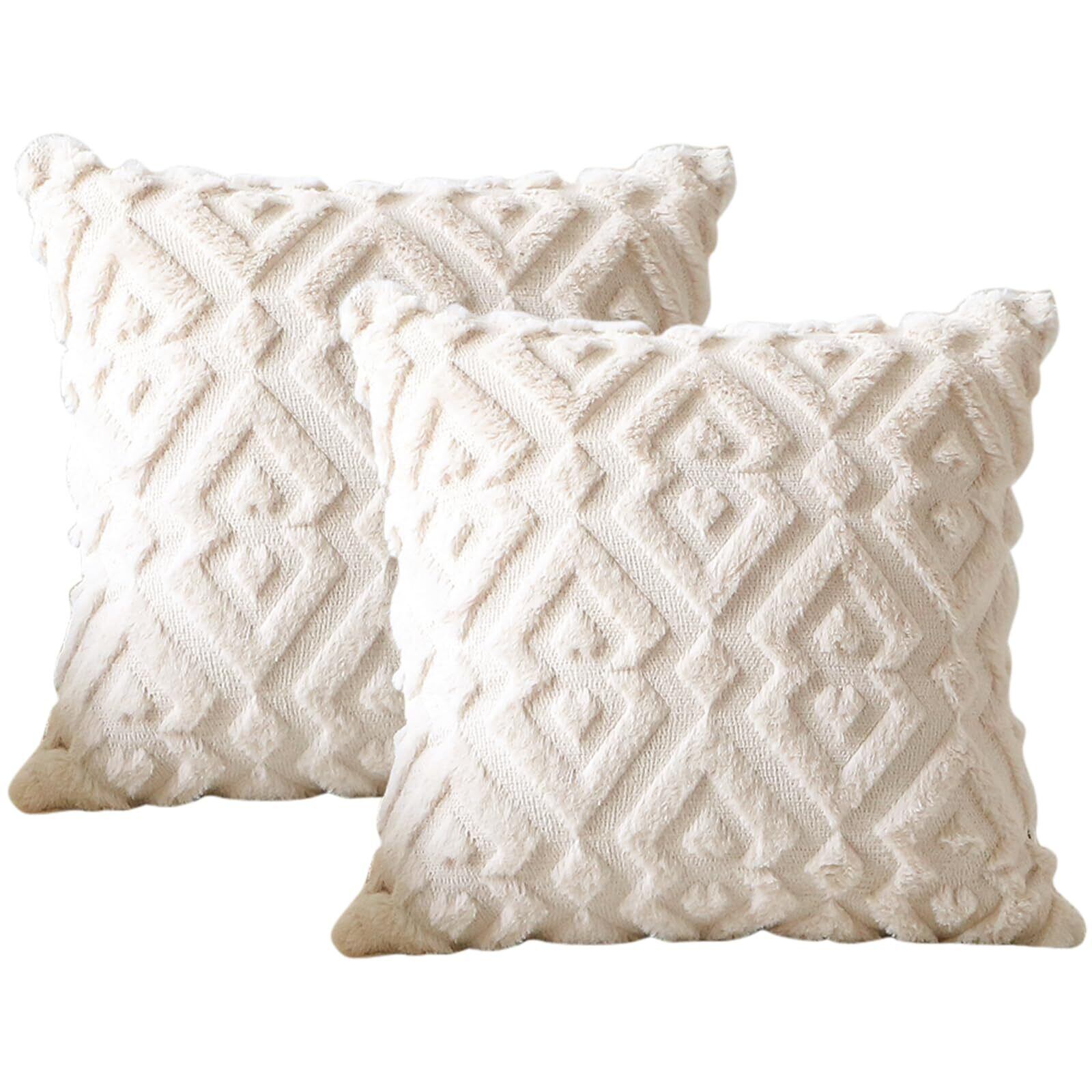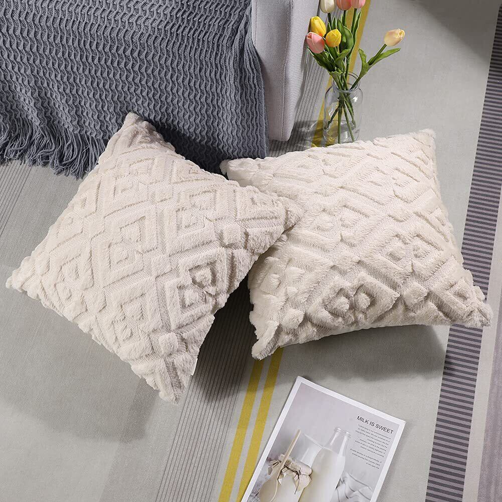 OTOSTAR クッションカバー 65x65cm 北欧 2枚セット ショートウール ベルベット おしゃれ 可愛い 柔らかい 柄 ひし形 モダン エレガント ファスナー インテリア ソファー用クッションカバー クッションケース ソファ背当て くっしょんかばー 装飾枕カバー 座布団カバー (ベージュ, 65x65)