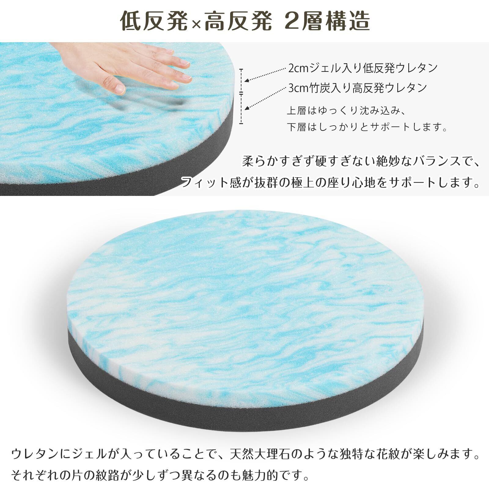 【2重構造ウレタン】上層は2cmの低反発ウレタン、下層は3cmの高反発ウレタンを使用した二層構造です。柔らかすぎず硬すぎない絶妙なバランスで、フィット感が抜群の極上の座り心地をサポートします。カバーは取り外し可能で、ウレタンの上下を調整できるため、個人の好みに合わせた異なる座り心地を楽しむことができます。
