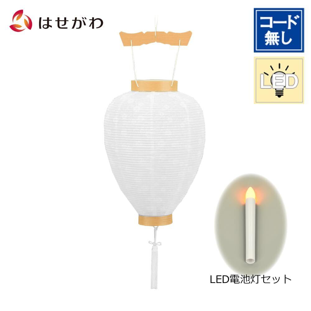 お仏壇のはせがわ 盆提灯 新盆用白提灯 電池ローソク付き 日本製 白紋天 吊り下げ 盆ちょうちん 提灯 ちょうちん 御所 中尺柾紋天 LED電池灯入 お盆 初盆 新盆