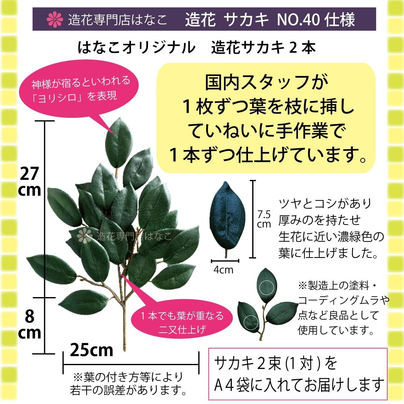 榊 造花 枯れないサカキ 神棚用 神具 国内組立 36cm 造花専門店はなこ (榊2本_NO.40)