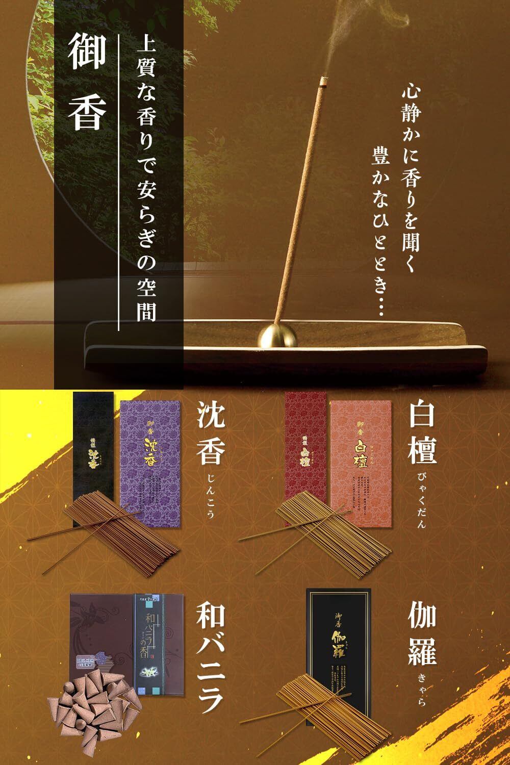 [TJ TRAD JAPAN] 線香 お香 日本製 アロマ お線香 (伽羅, 短寸)