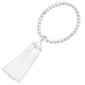 主玉:貝パール8mm、天玉:本水晶6mm、親玉:本水晶10mmとなります。房色:白