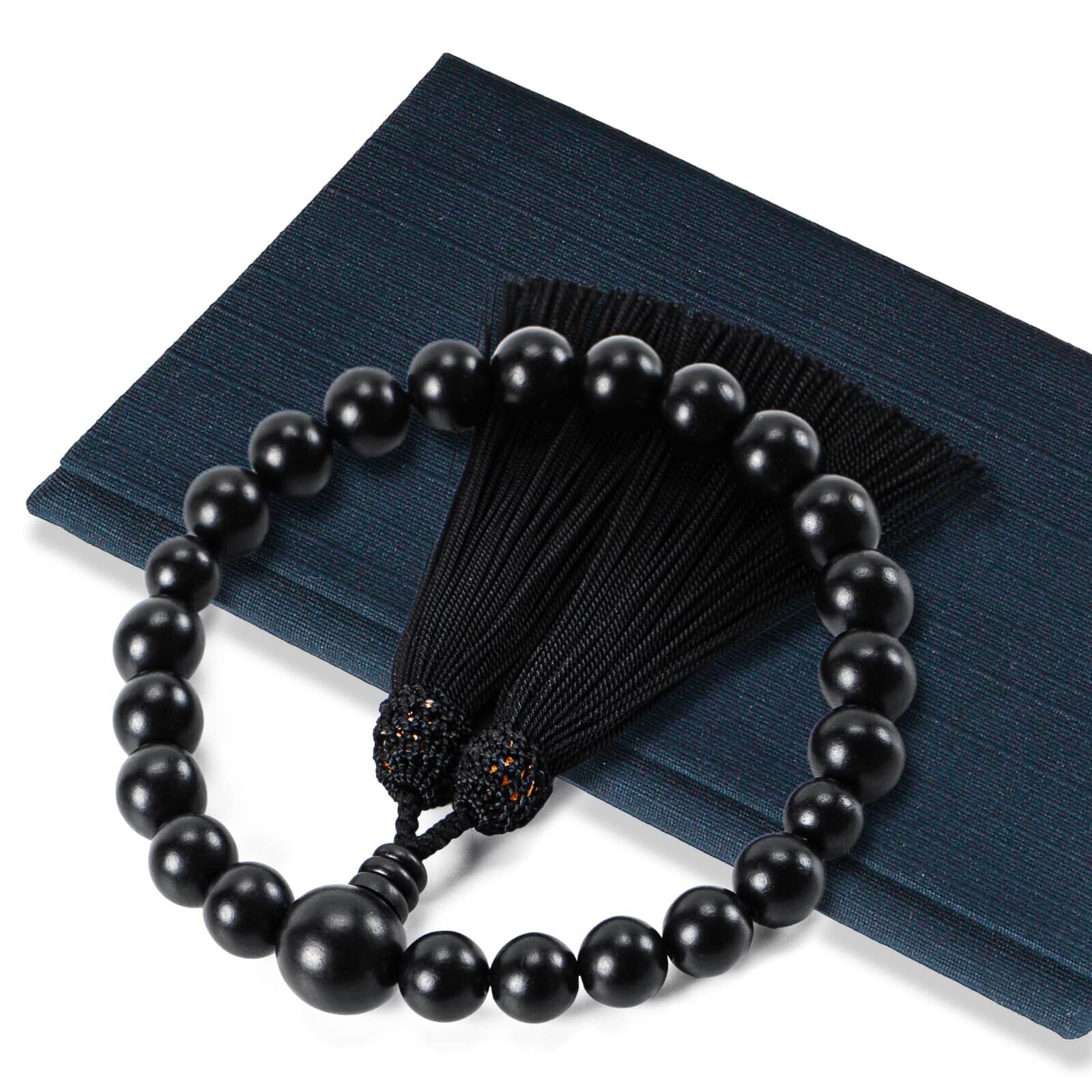 福正堂 数珠 【葬祭プロの監修 京都伝統工芸品】 念珠 男性用 葬儀 葬式 冠婚葬祭マナーBOOK付 黒壇 艶消し+数珠袋(萩 紺)