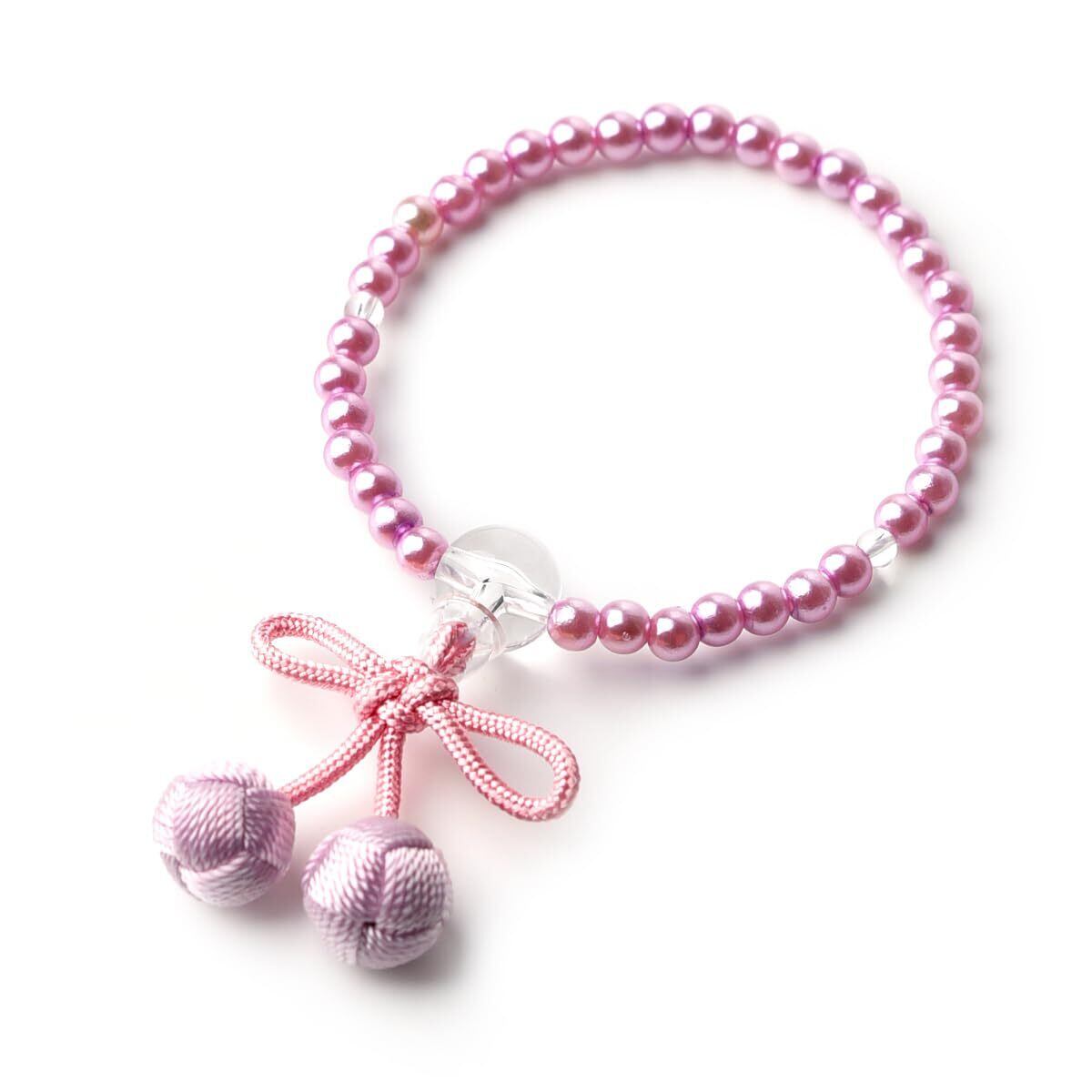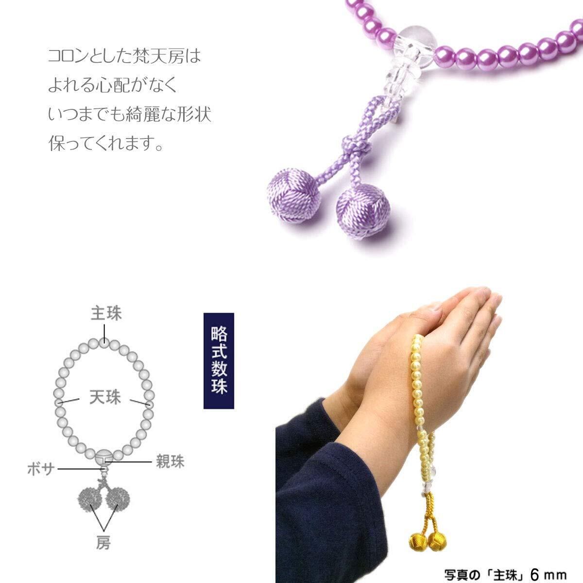 【EsuonHappiness】 数珠 子供 6mm 梵天房 数珠袋付き すべての宗派で使える 可愛いちょうちょう結び 愛らしいデザイン 法事 葬式 パープル