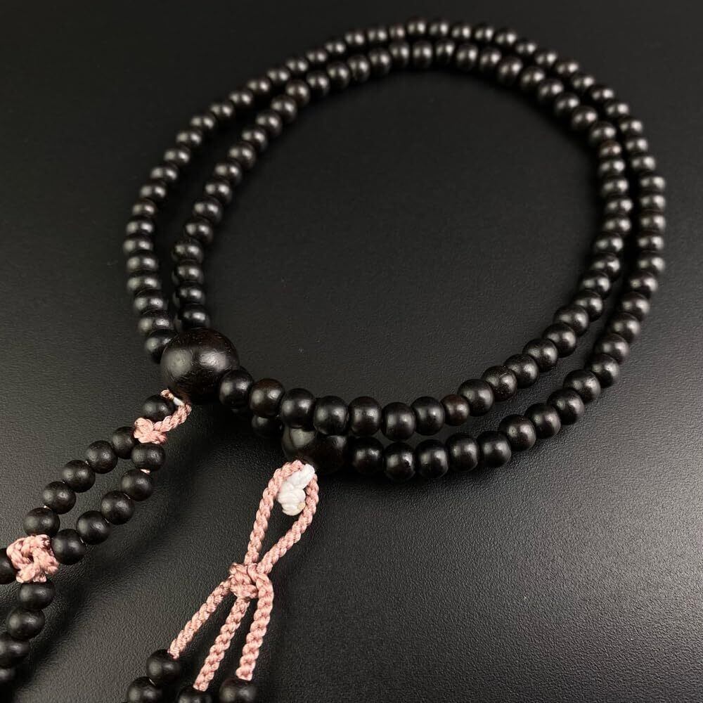 日蓮宗女性用の木製数珠です、年齢を問わずお使いいただけます。素材は黒檀を採用しております。黒檀は高級木材『唐木』の代表格が,材質は緻密で心材の部分が黒く、細工用の木材として、家具や仏壇、建材、楽器などに使用されています。一般に流通している木材の中では、最高の強度と重さを誇る銘木材です。房は、丈夫で扱い易く、型崩れを起こさない小田卷梵天房、長い使用は可能です。