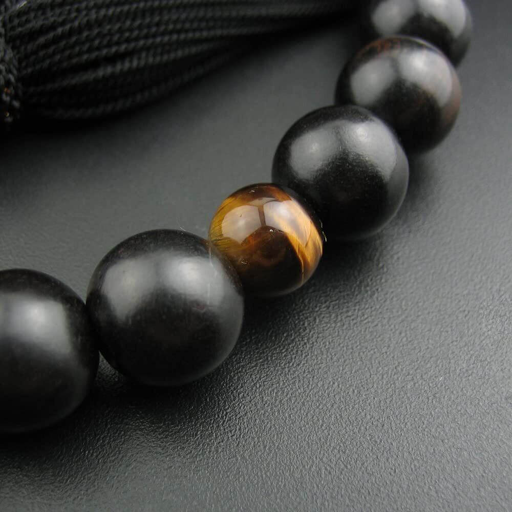 葬儀、お通夜、法事、お墓参りにて、すべての宗派のお客様にお使いいただける男性用の「略式数珠」でございます。素材は、人気な黒檀でございます。アクセントには、虎目石を使用させて頂きました。