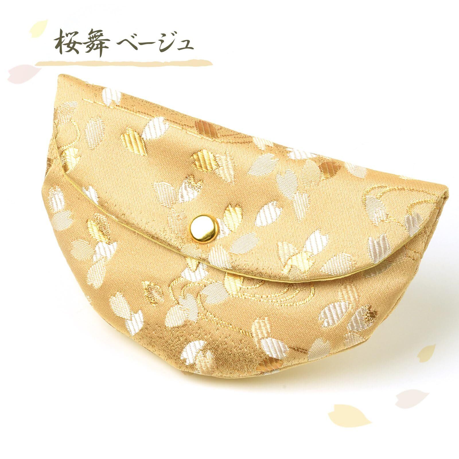 [EsuonHappiness] 数珠袋 女性用 数珠入れ 半月形 西陣織 金襴 女性用 念珠袋 念珠入れ 西陣 日本製 京都 半月数珠袋 (桜舞ベージュ)