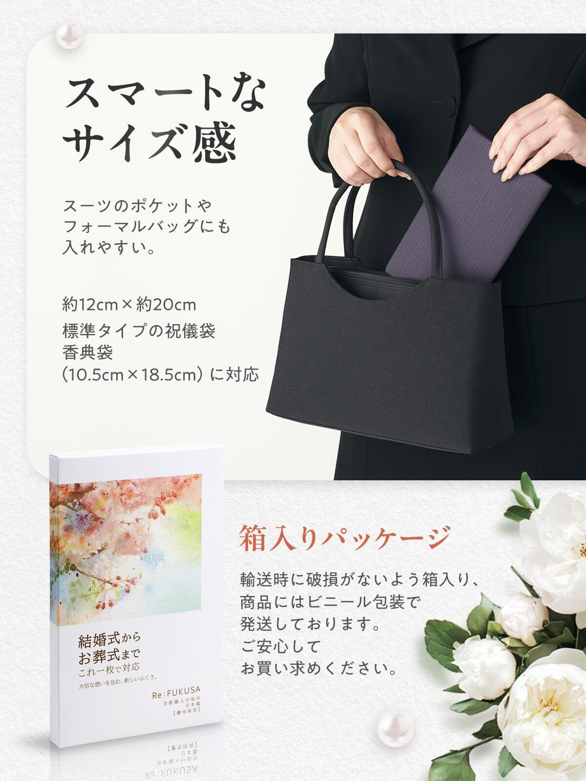 Re: FUKUSA – 大切な想いを、丁寧に包む。 結婚式にも、お葬式にも使える慶弔両用のふくさです。 京都の老舗専門店が伝統技術を活かして仕立てた高品質な一品。 初めてふくさを使う方でも安心の冠婚葬祭マナーBOOK付き。 女性にも男性にも利用いただける男女兼用デザインです。