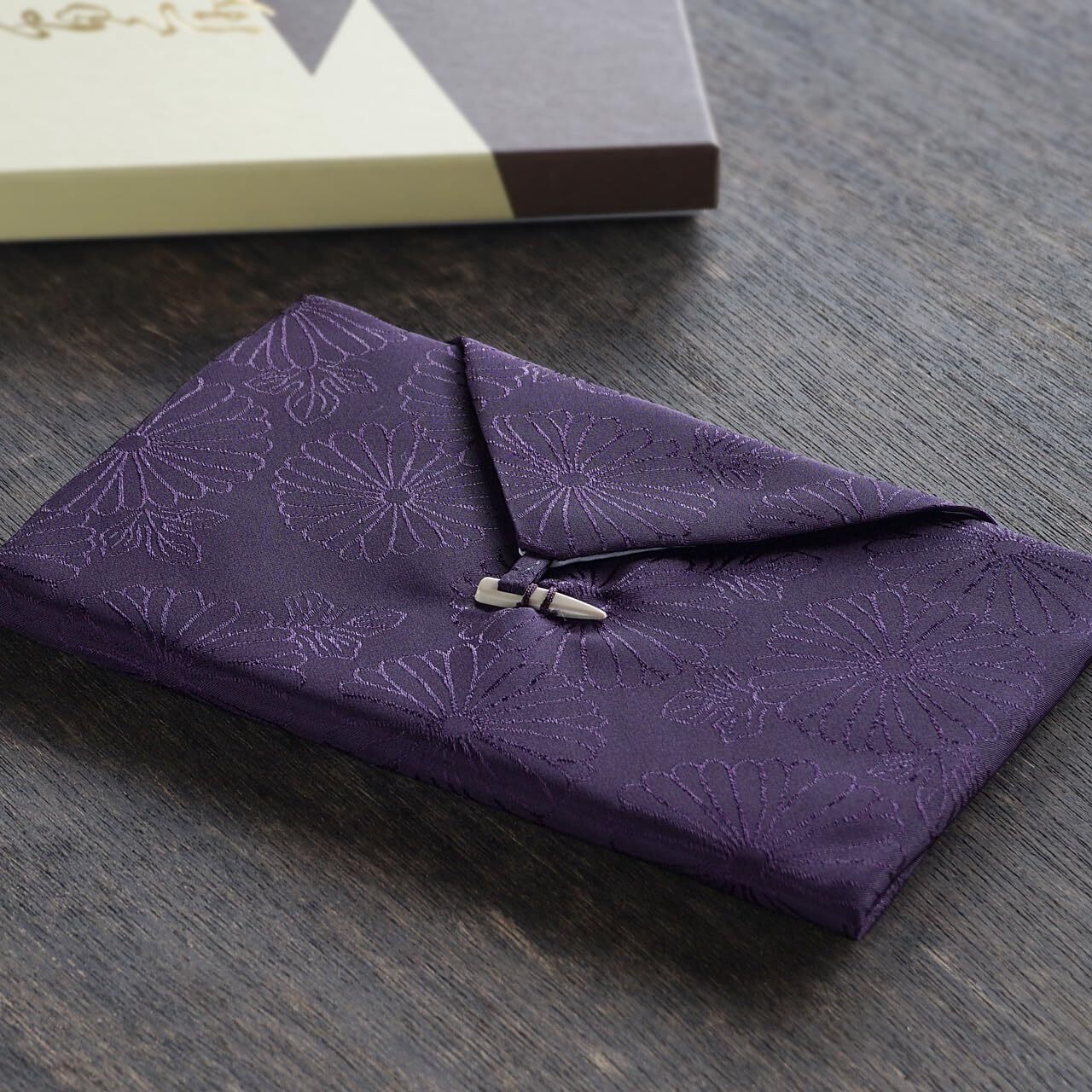 台付 ふくさ 袱紗 綸子 菊花紋 包み方説明書付き 箱入り 紫