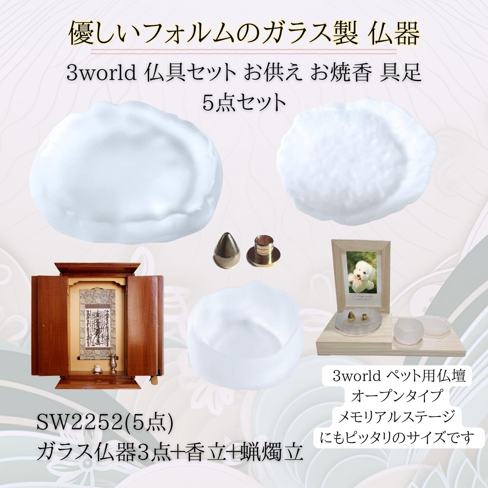 3world 仏具セット お供え お焼香 具足 モダン仏壇 ペット仏壇 SW2252ガラス仏器3点+香立+蝋燭立(5点セットホワイト)