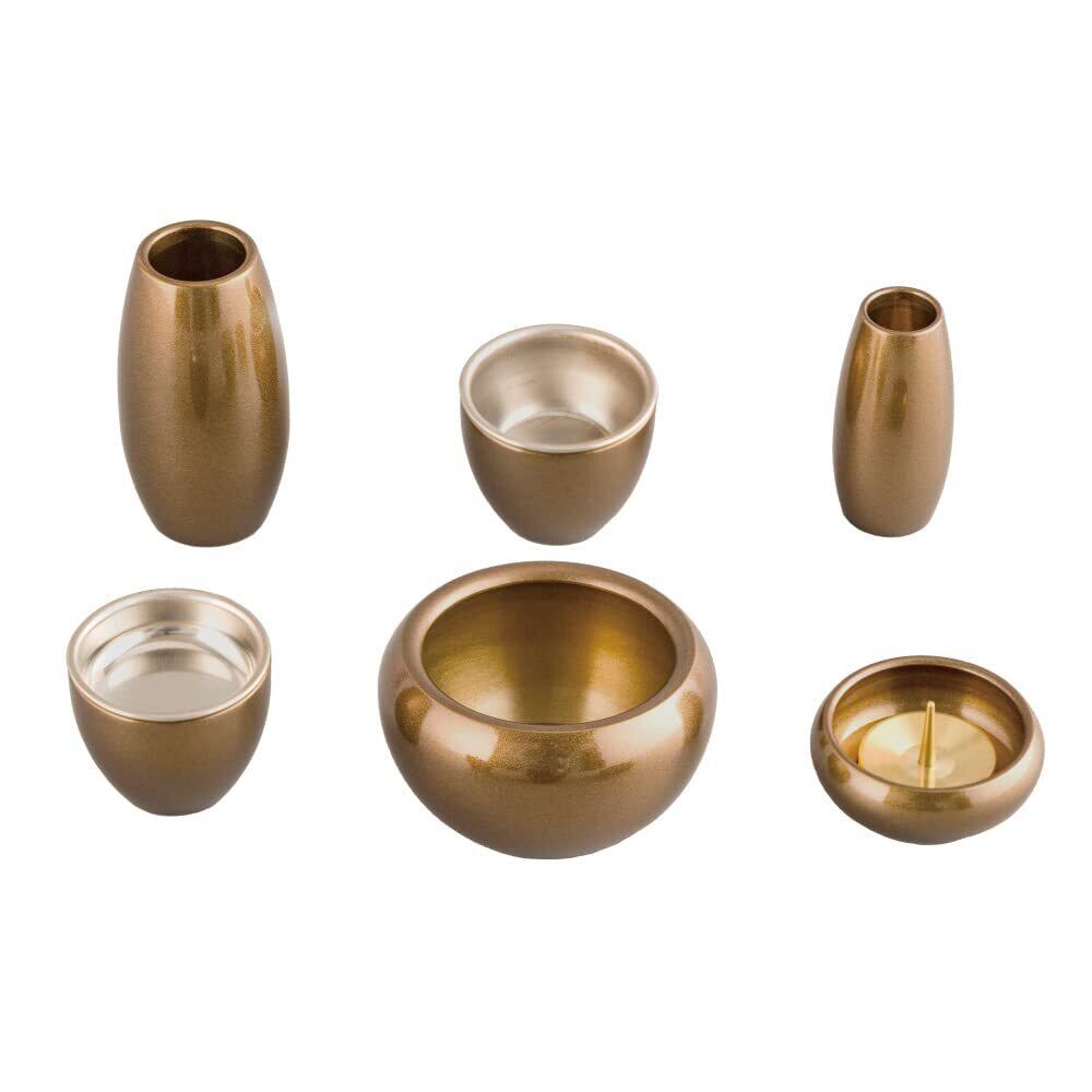 仏具 シルマ 琥珀 ブラウン 6具足 2.0寸 モダン仏具 銅製 真鍮 まあるい かわいい ミニ仏具 セット (琥珀 ブラウン) 香炉 花立 蝋燭立て 仏飯器 茶湯器 線香立て