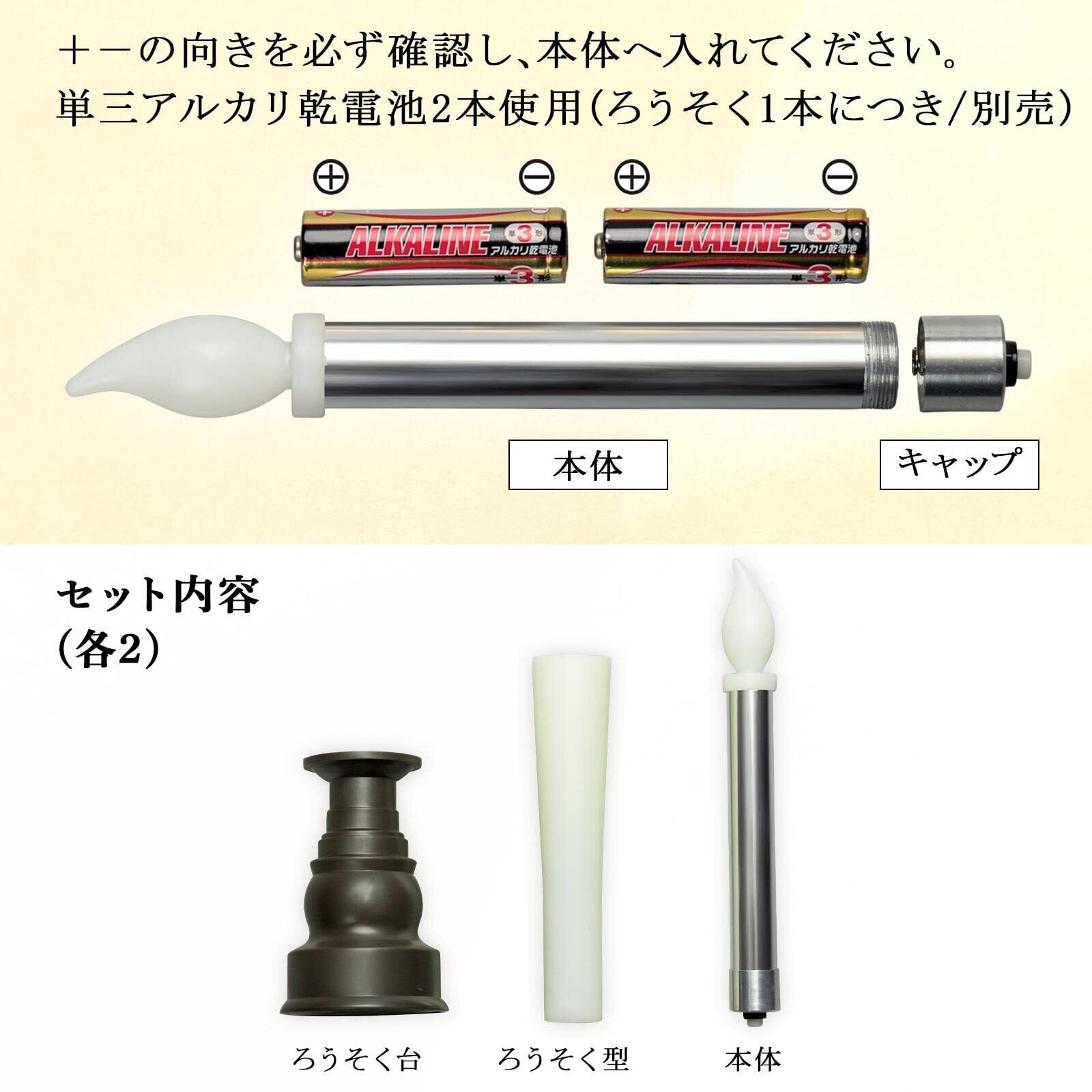 コモライフ(Comolife) 仏壇用のLEDろうそく 2本組 電気ろうそく 電池式 LED 仏壇用 ろうそく 仏具 火を使わない ワンタッチ 燭台付き 配線不要 ゆらぎ 仏壇 墓参り 法事 お盆 お彼岸 【連続点灯時間:約300時間】