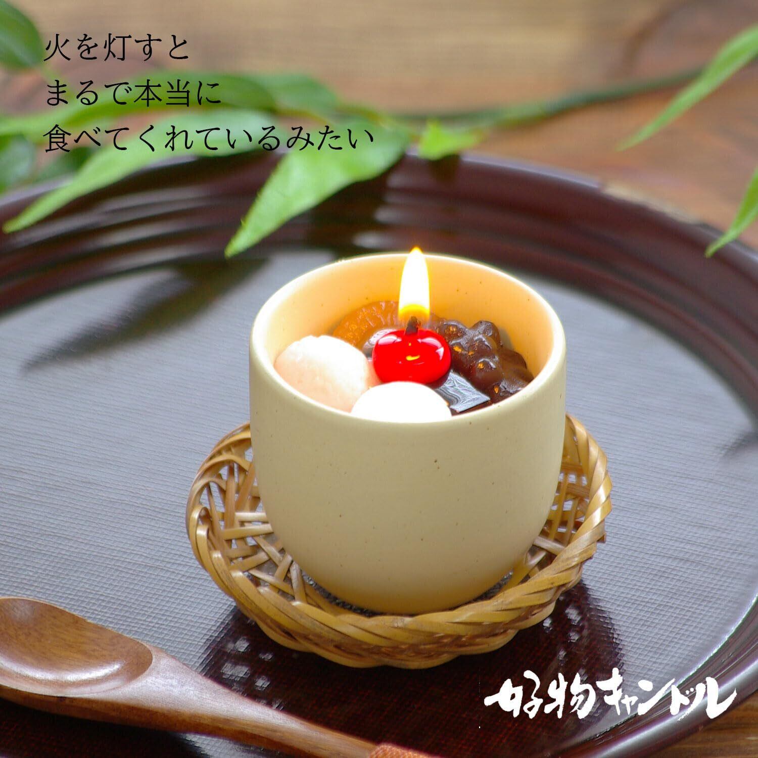 本物の「あんみつ」のような質感。甘い物が好きだった故人にお供え。また、お部屋のインテリアとしてご使用ください。燃焼時間:約7時間