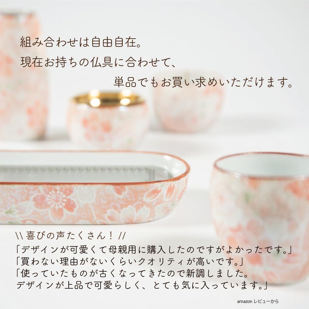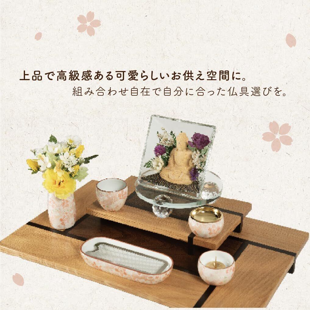 同シリーズ(仏飯器、湯呑、花瓶、燭台、香炉等仏具セット)の単品販売です。他シリーズのお香立てや線香差し、供物台、おりんと合わせての使用など、自由な組み合わせをお楽しみいただけます。