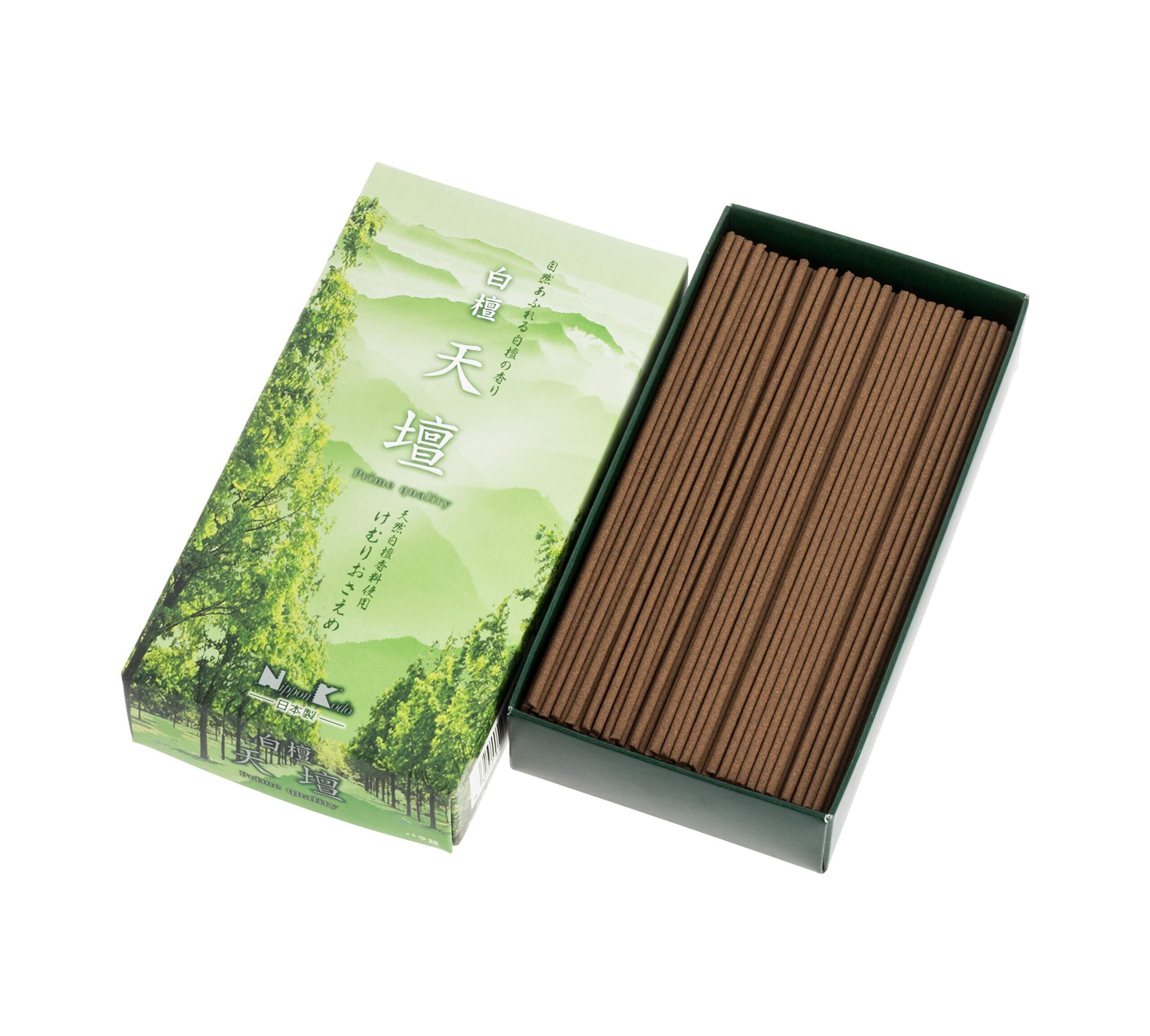 「天壇」は自然しか生み出すことのできない格調高い香木の香りのお線香です。安土桃山文化の天正年間、その歴史を受け継ぐ日本香堂独自の調香技術と最新の創香を用い、厳選された香原料をふんだんに用いた落ち着きのある香りを、個性的で温もりのある逸品に仕上げました。
