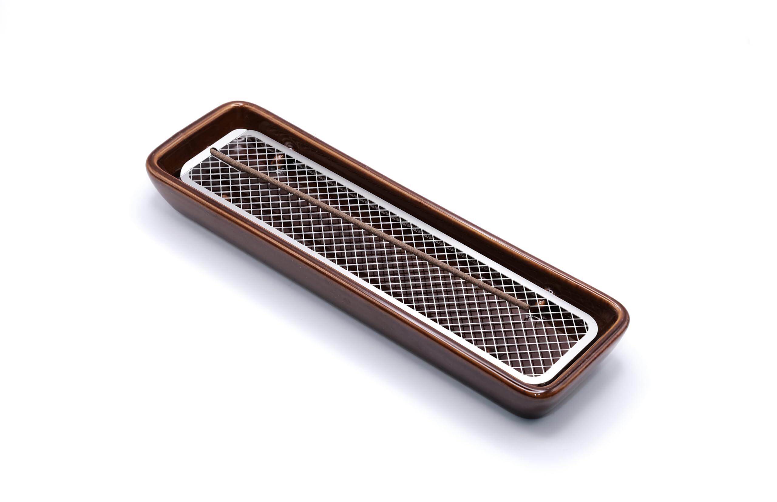 横置き線香立ては、独自の意匠と美しさを備え、新たにデザインされたステンレス製の網とともに日本の意匠権を取得しています。この商品を模倣したり複製したりすることは固く禁じられており、発覚した場合は法的責任を追求いたします。