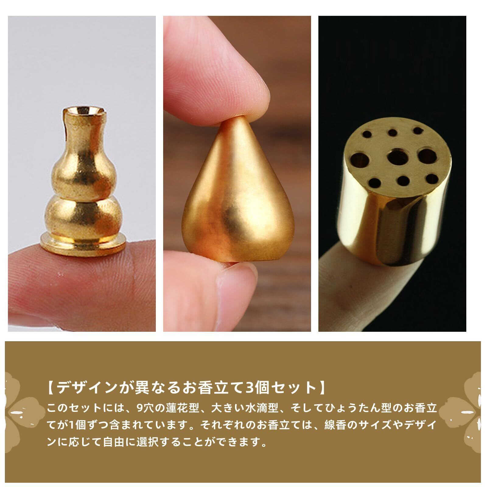 ZiSyouMa 3点セット お香立て 線香立て 真鍮 蚊取り線香香皿 ひょうたん香立て 円筒形9穴 水滴型 ミニ インセンスホルダー 和風 瞑想 癒やし香炉 書斎 お香置き (ゴールド)