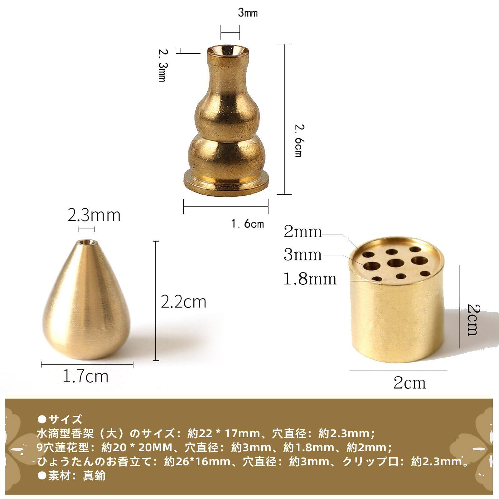 【商品仕様とアフターサービス】水滴型香架(大)のサイズ:2.2*1.7mm、穴直径:2.3mm;9穴蓮花型:20*20MM、穴直径:3mm、1.8mm、2mm;ひょうたんのお香立て:26*1.6mm、穴直径:3mm、クリップ口:2.3mm。商品に万が一問題があった場合は、ご注文番号でにご連絡ください。迅速に対応いたします。状況に応じて代替品や返金をご提供いたします。ご安心ください。