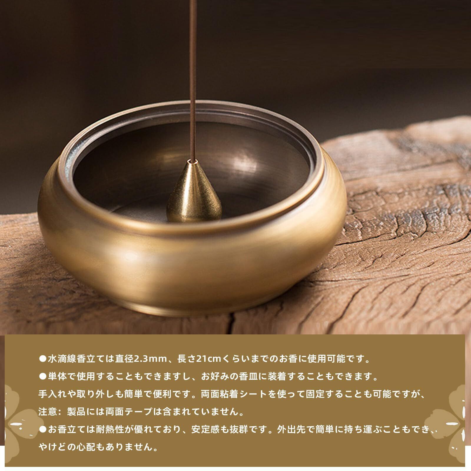 香炉としても使用可能です。鮮やかな黄銅色のお香立ては、あなたの家に特別な装いを与えます。仏像には上品な金色がおすすめです。このお香立てはどのような仏壇にも調和し、高級感を与えることができます。