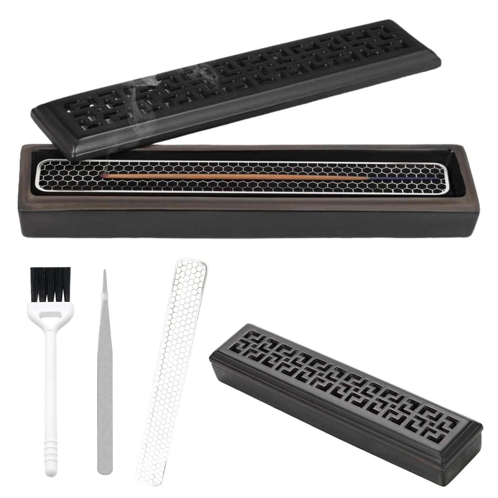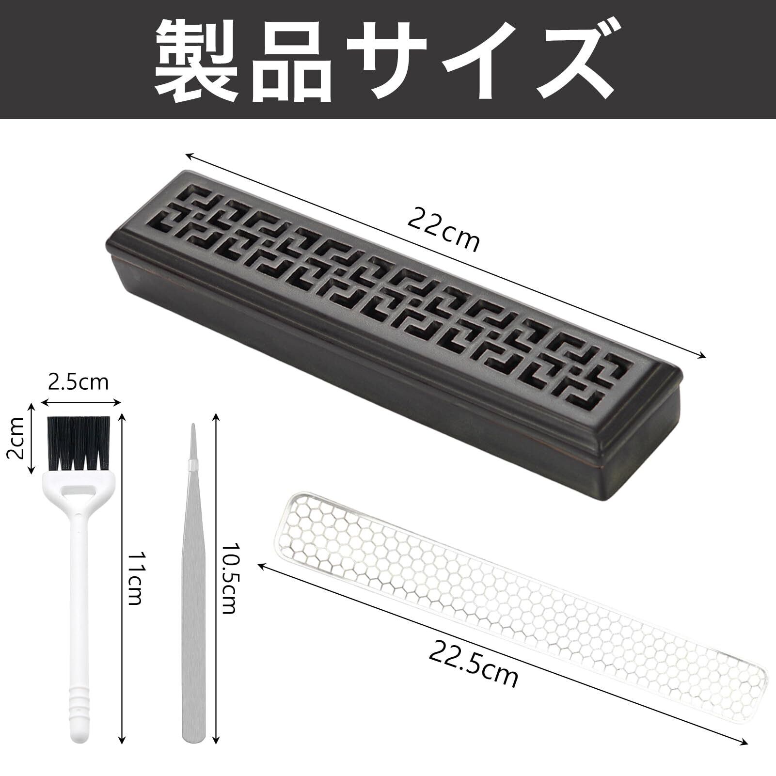 お香立て 横置き香炉 香炉 横置き 仏壇/茶道用品/香道用/料亭用 蓋つき 線香皿 難燃綿付き 瞑想 睡眠 ヨガ スパ ルーム装飾用 おしゃれ 和風 安全 香道用 (ブラック)