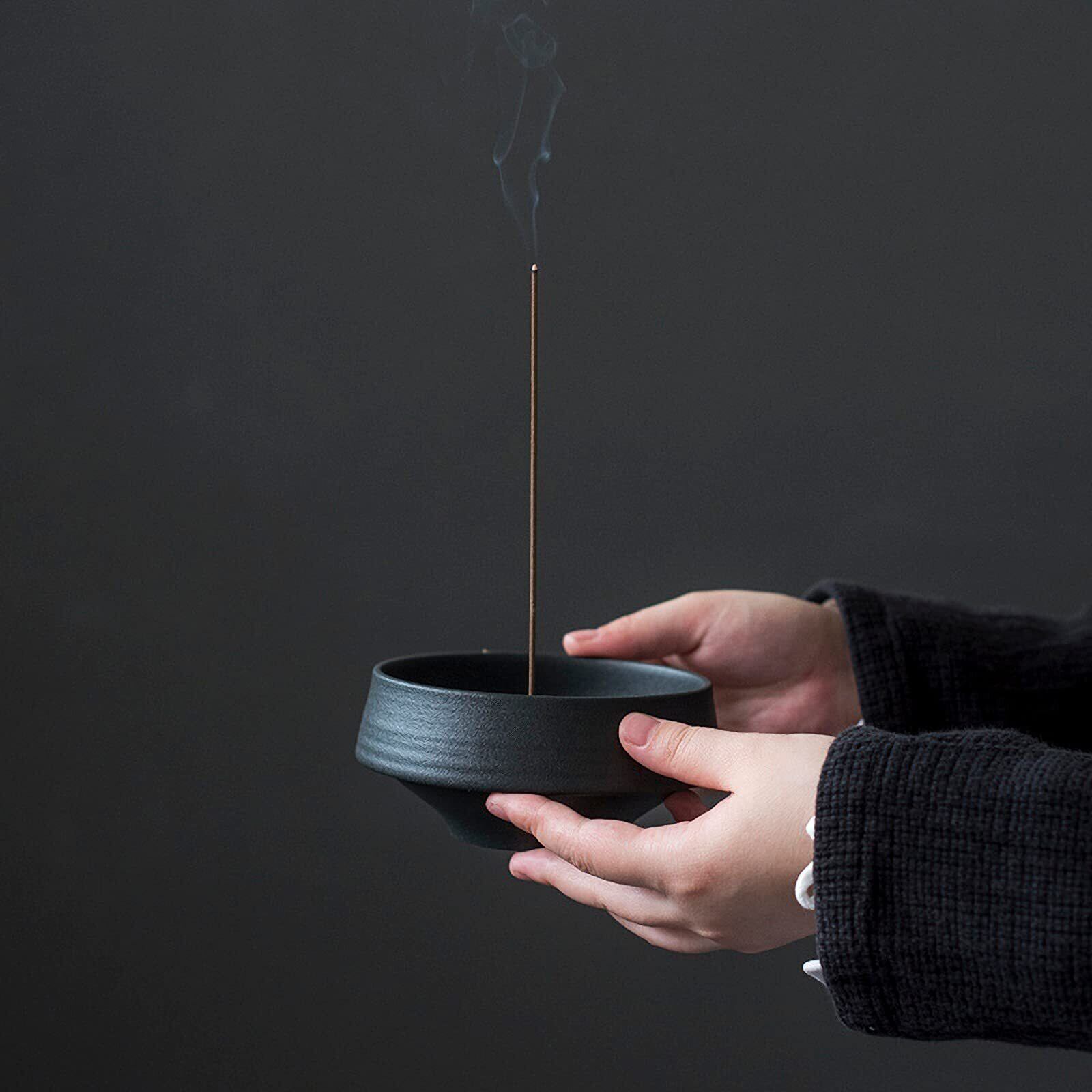 Nannlia 直径13cm お香立て おしゃれ 陶器製 香炉 線香立て インテリア 高級 御洒落 和風 室内 仏壇用 (ブラック)
