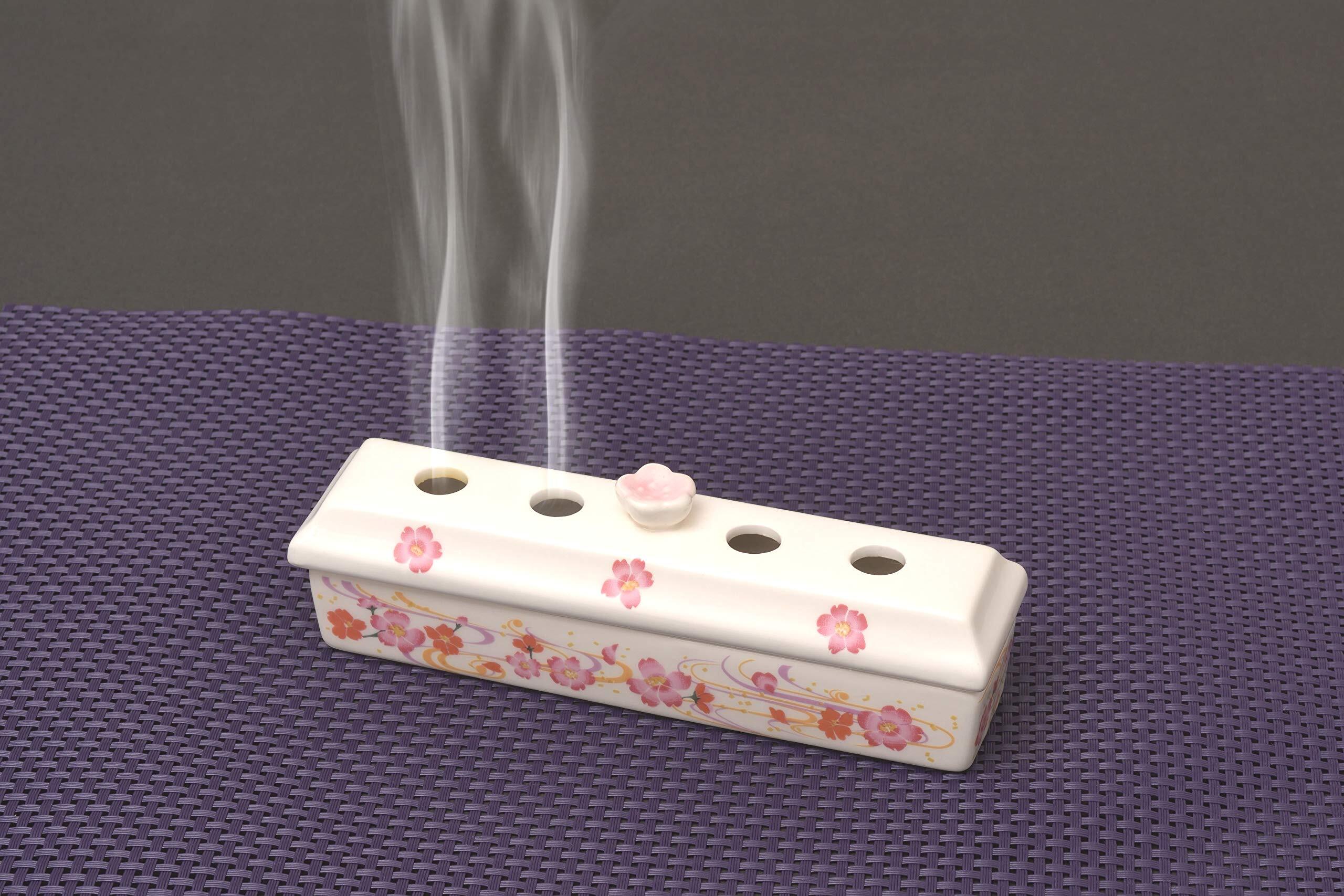 瀬戸陶芸社 線香ケース 線香入れ お線香 お盆 仏壇用 お仏壇 仏具 供養 瀬戸焼 寝かせて使う香炉皿 桜 白、ピンク 約奥5×幅18.3(内寸幅16.5)×高5.5㎝、マット/約縦2.8×横16㎝ 20218198