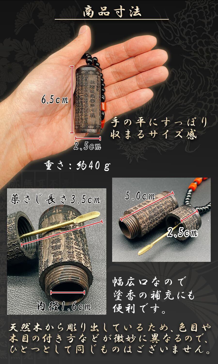 ReTORUE 塗香入れ 塗香 薬さじ付 塗香入れ 黒檀 塗香入れ 携帯 塗香入れ 高野山 (雲中龍神 Bタイプ)