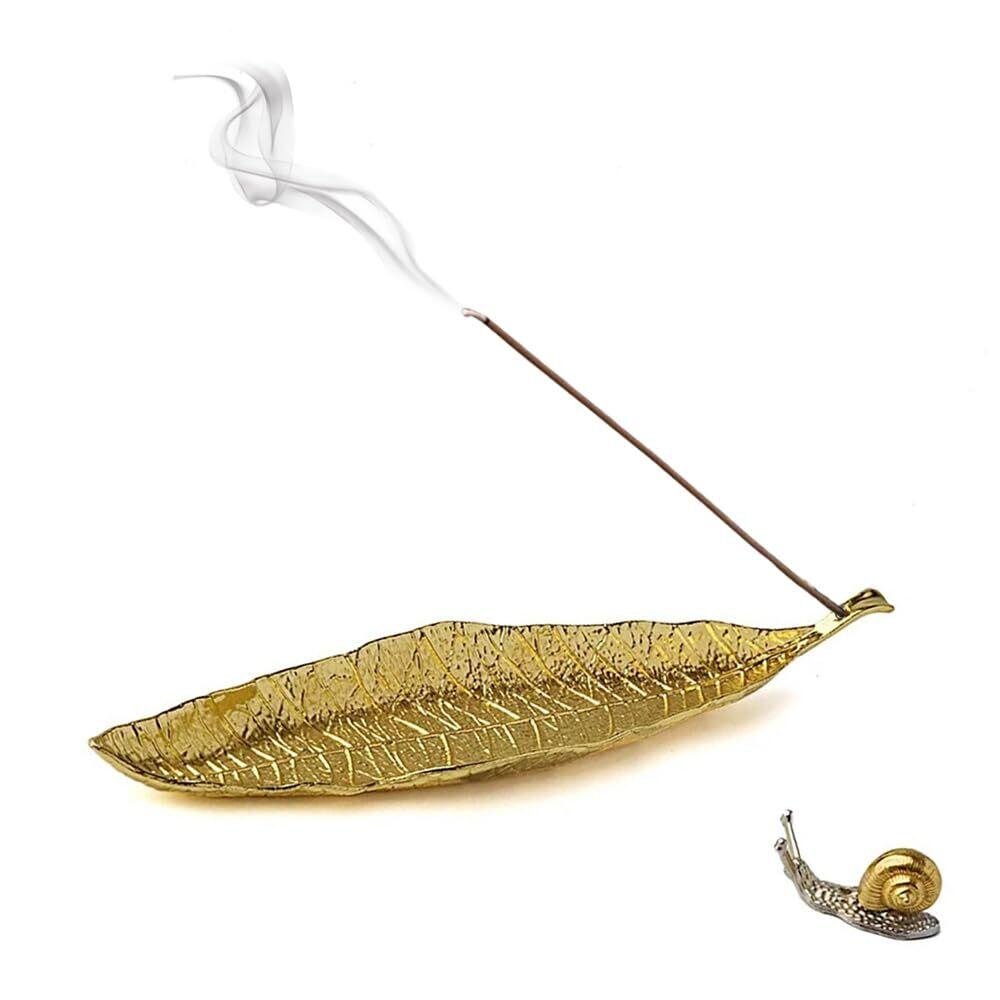TUMETINSS 線香立て お香立て お香たて 仏壇用皿 香皿 多機能 茶道 書斎 喫茶店 (木の葉タイプ) (カタツムリ添え) ( ゴールド)(スモール)