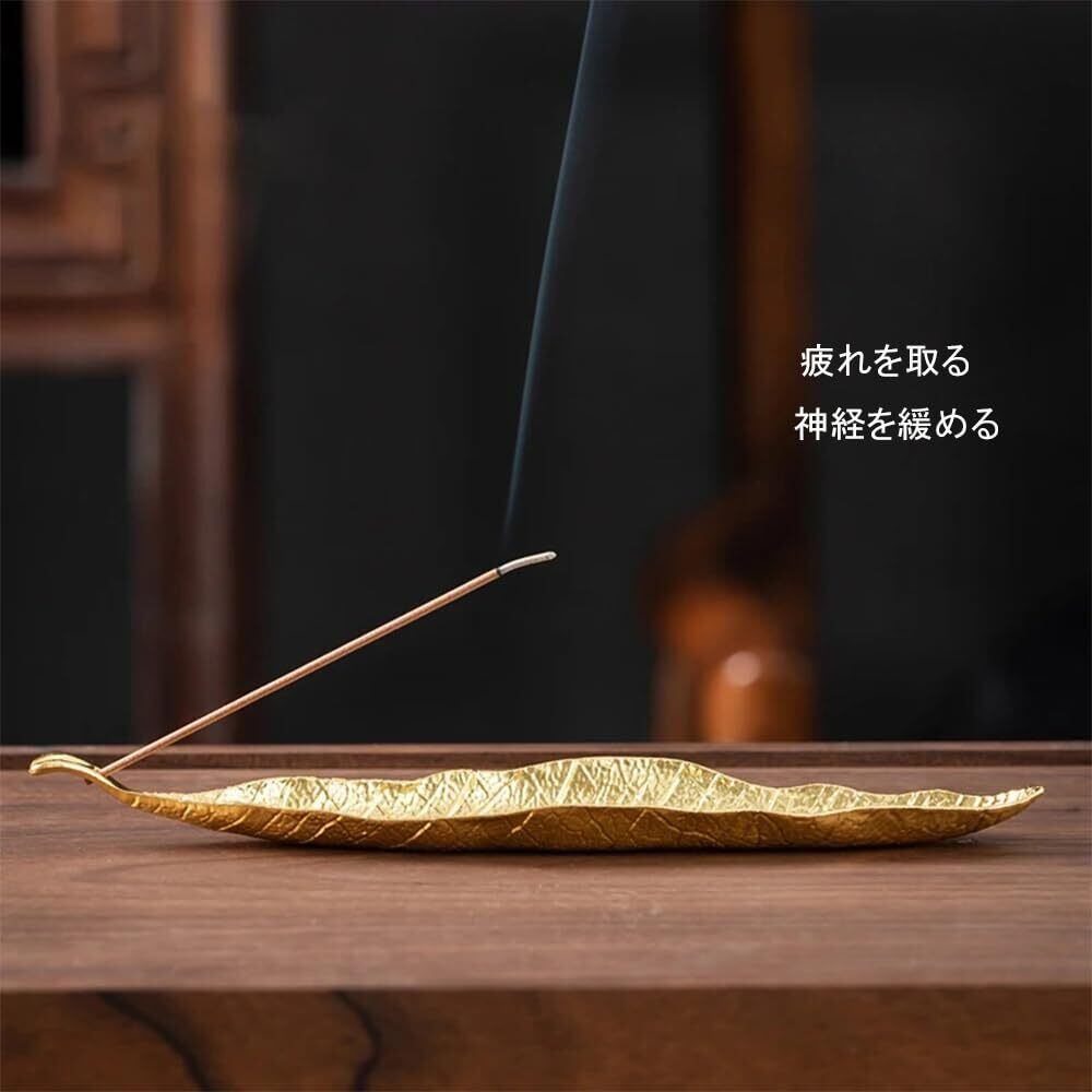 【商品仕様】材質:亜鉛合金、菩提樹の葉香皿×1個、カタツムリ香立て×1個、香皿は長さ21cm×幅4cm×高さ1.6cm、型番:スモール、カラー:ゴールド。お香のサイズに対応:外径1.5~2mm、長さ11cm~18cm程度のお香が使用可能ですので、ご購入の際はご確認ください。カタツムリは長さ3.8cm×高さ1.1cmです(短香に合う)、クリーニングブラシ1本。