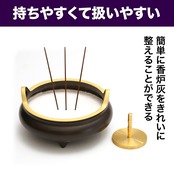 お香を最後まで楽しめる:燃えカスの処理や火の始末の簡単さ、お香の種類を問わず使える点から、灰を敷き詰めるタイプの香炉は大変便利です。こちらの灰押さえで整えることでお香が最後までスムーズに燃焼しやすくなります。