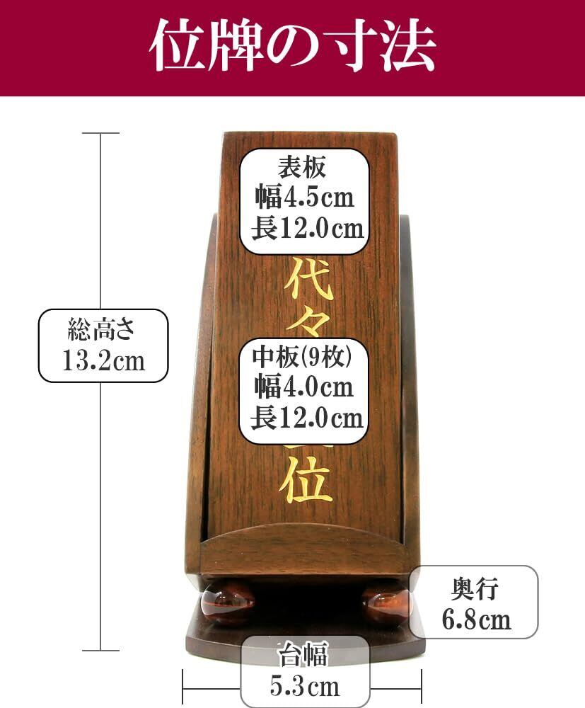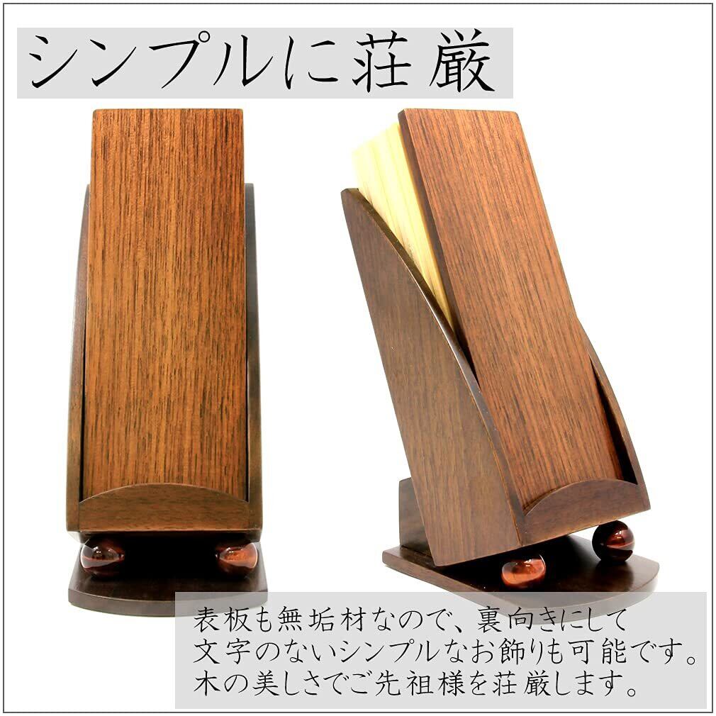 【シンプルに荘厳】 表板も無垢材なので、裏向きにして文字のないシンプルなお飾りも可能です。木の美しさでご先祖様を荘厳します。 【本体サイズ】高13.2cm 幅5.3cm 奥行6.8cm 表板 12.0cm×4.5cm 中板 12.0cm×4.0cm 中板枚数 9枚
