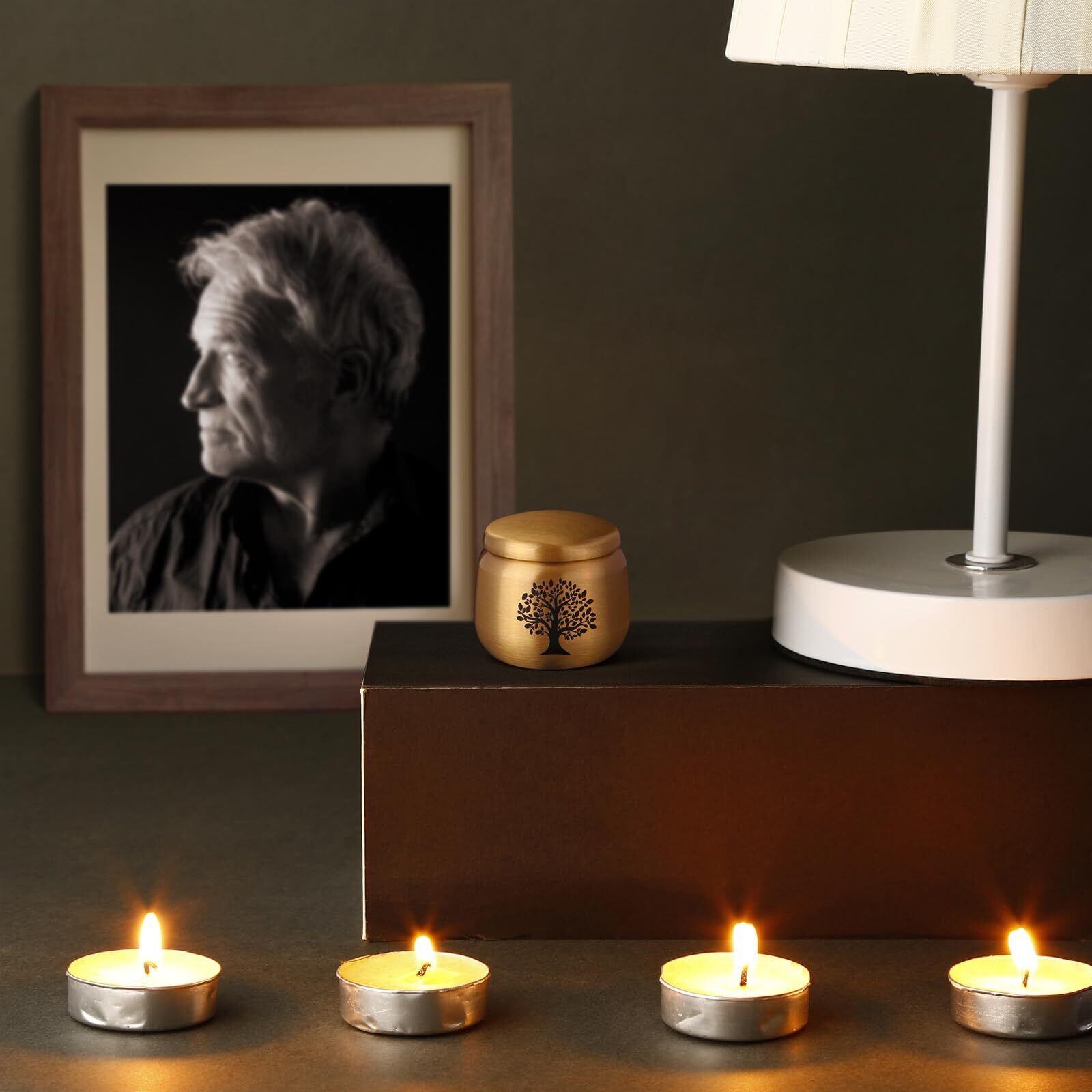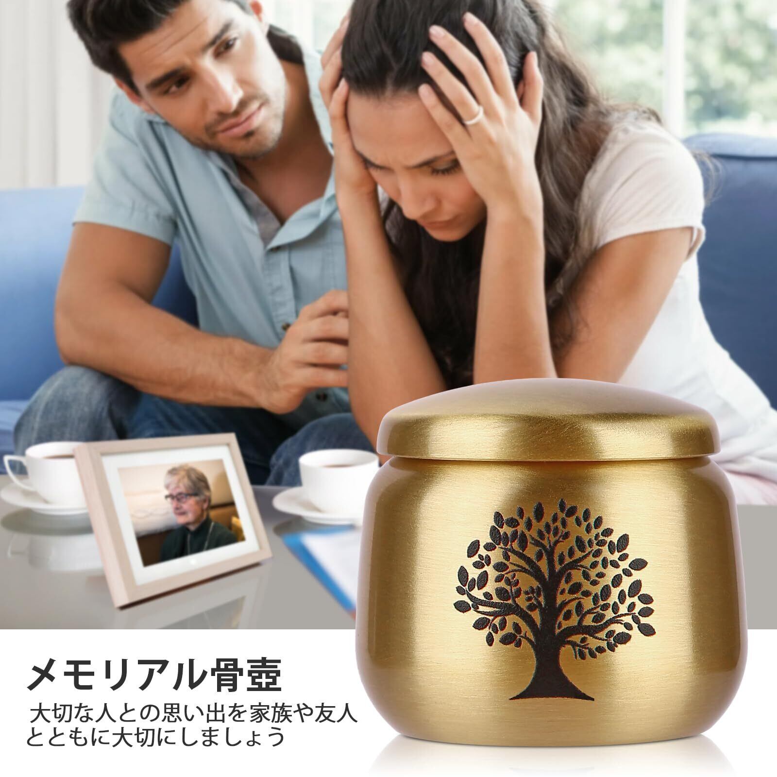 真鍮製 ミニ骨壷 1個セット - 「生命の樹」デザイン 彫刻付き 小型遺灰入れ - 人間・ペット遺灰用 メモリアル骨壷 2.5立方インチ収納可能