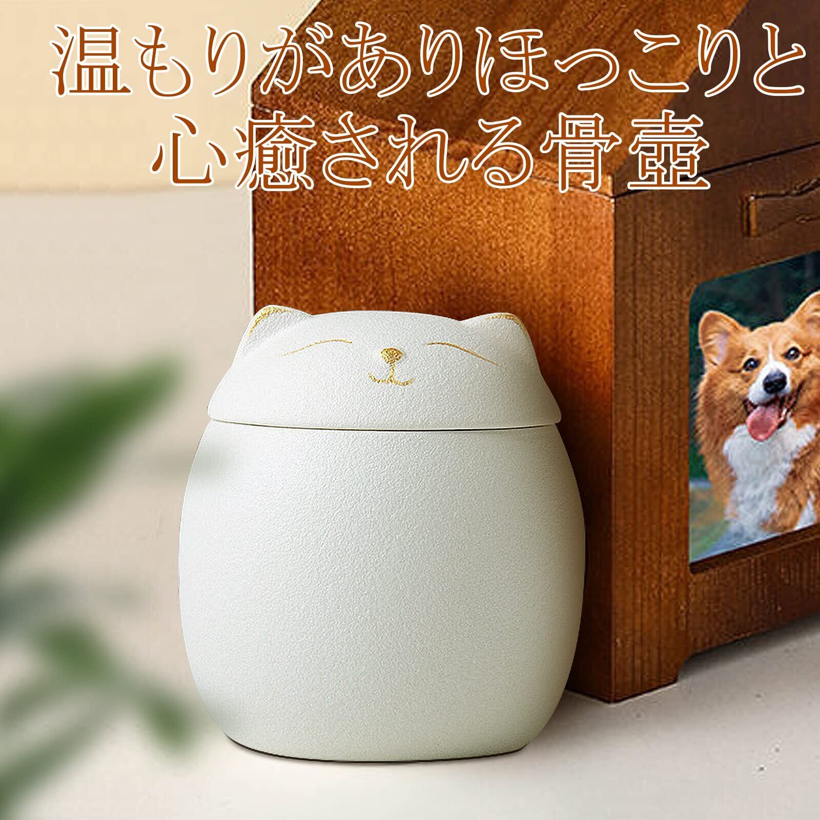 ziyeu ミニ骨壷 猫の形 猫 分骨壺 遺骨入れ 骨壷 ペット 分骨 遺灰 手元供養 ペット仏壇用 袖珍骨壷 和風柄の袋付き