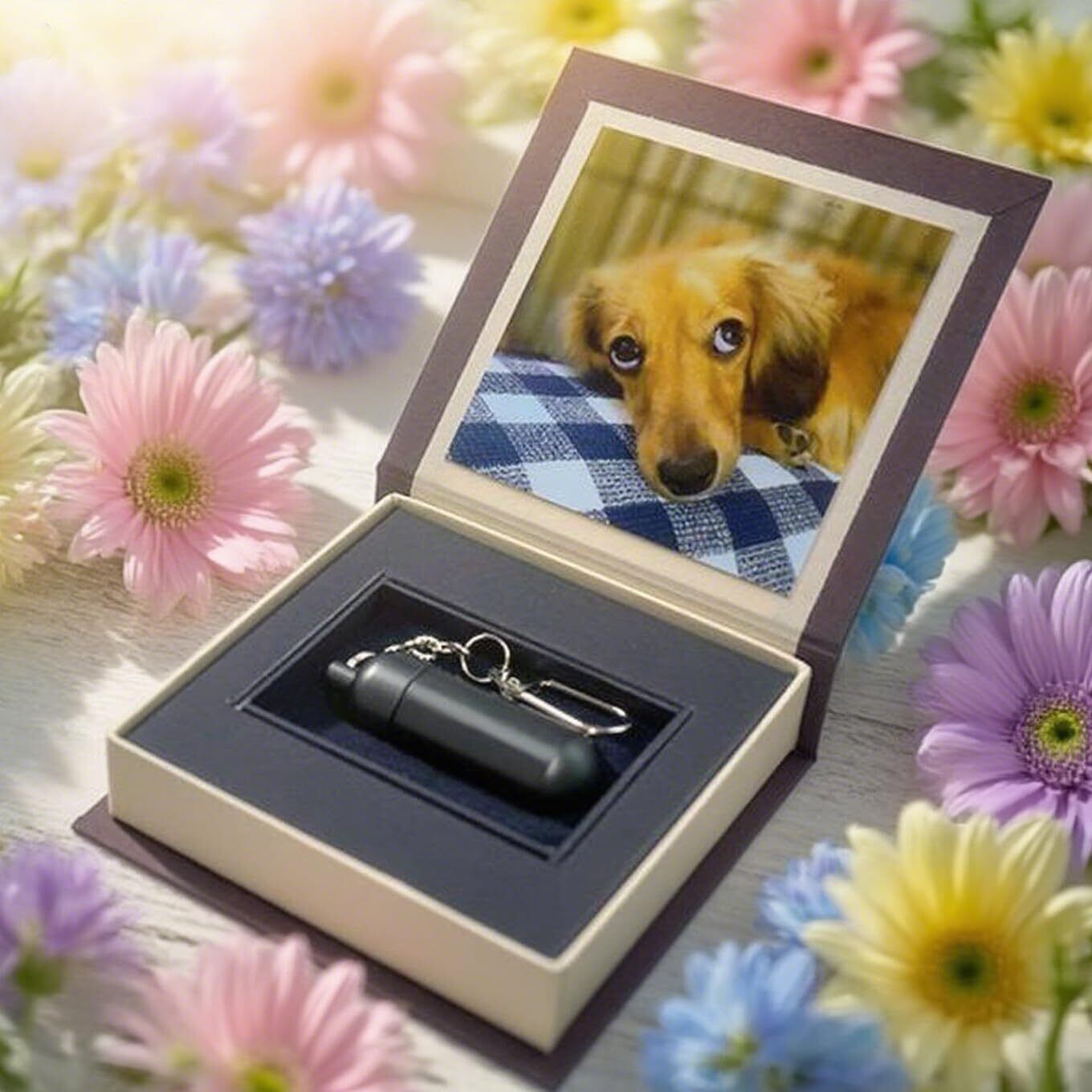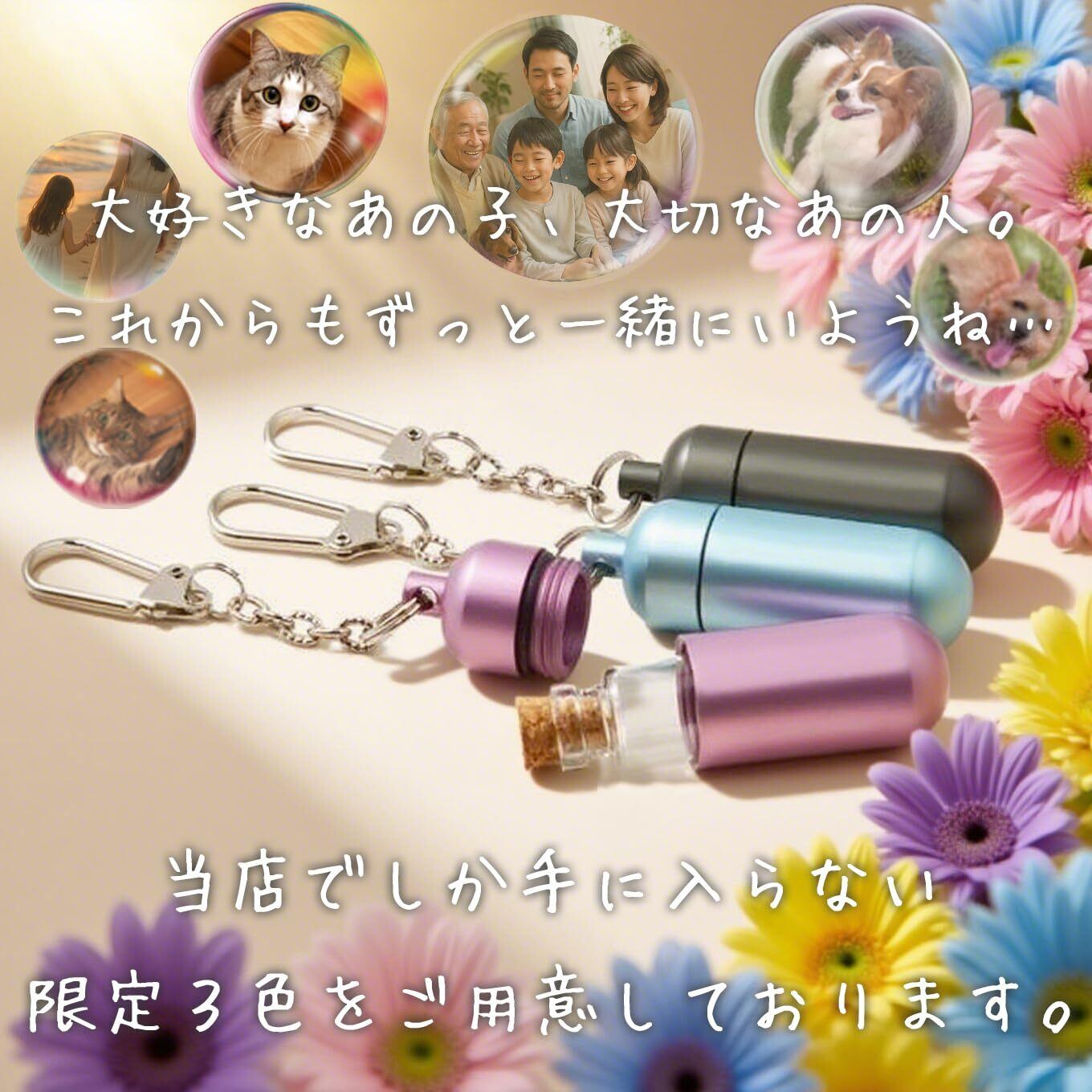 お骨はもちろん、遺毛や歯・爪などの小さな遺品や思い出の品をおさめて、いつも身近に感じられる分骨カプセルです。