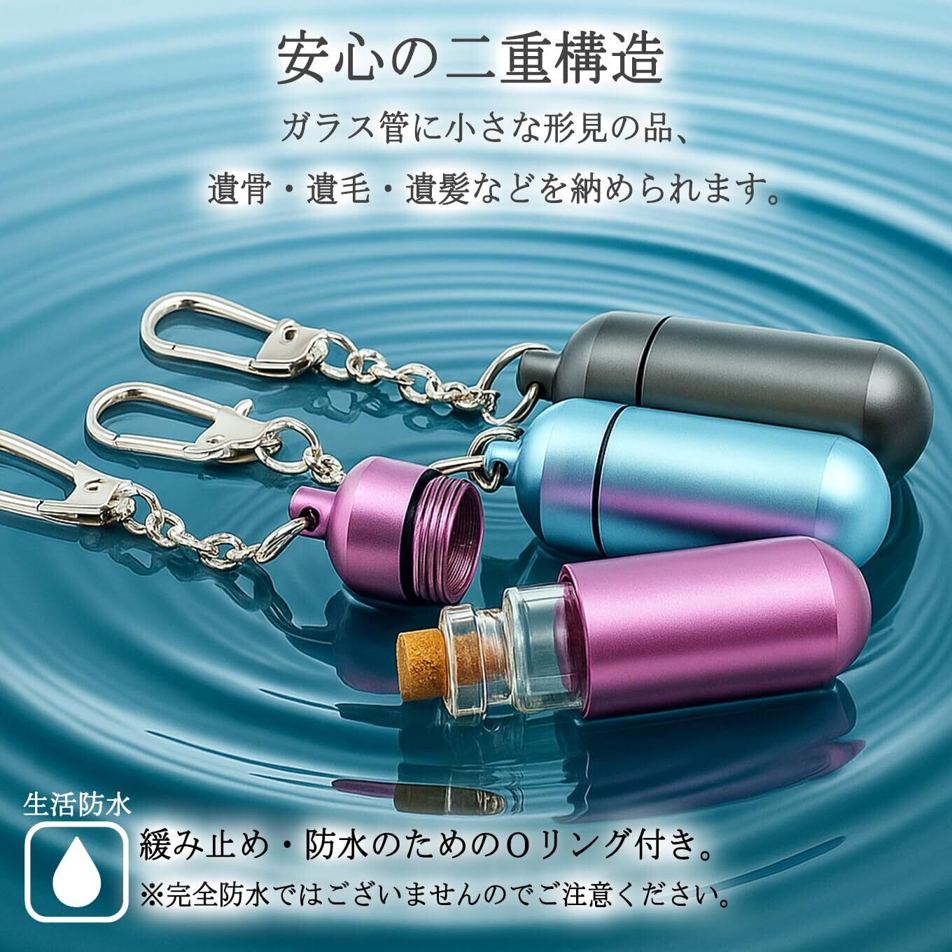 遺骨カプセル フォトBOX付き キーホルダー ガラス管入り 二重構造 遺骨ペンダント 遺骨入れ 遺骨 ペンダント ネックレス アクセサリー (スペースグレー)