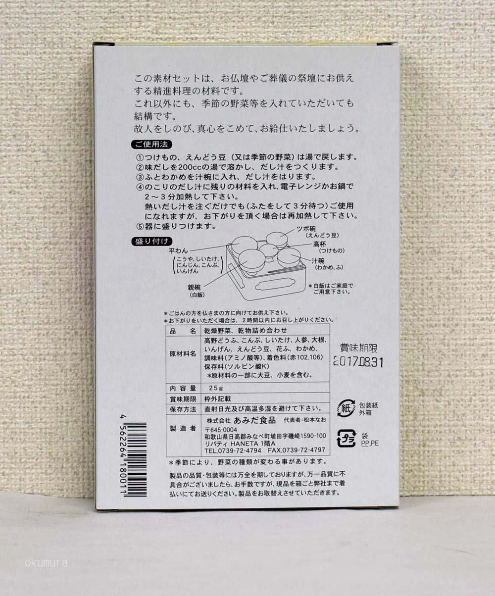 お湯で戻したり電子レンジもo.kなので、簡単に精進料理がお供えできます、