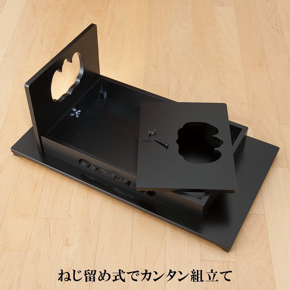寸法:巾60cm×奥行34cm×天板高さ23cm/重量:3.5kg/材質:木製黒塗り/備考:脚は組み立て式/生産地:日本製